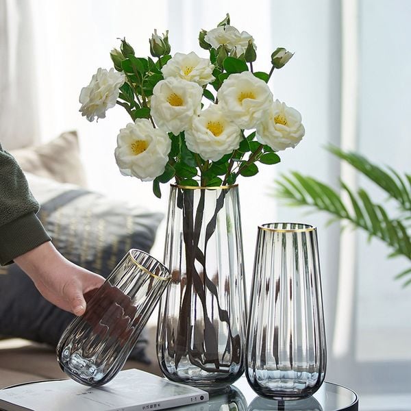Bình hoa thủy tinh sọc miệng viền vàng