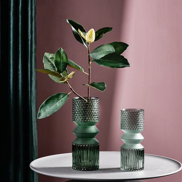 Bình hoa thủy tinh sáng tạo gợn sóng xanh rêu