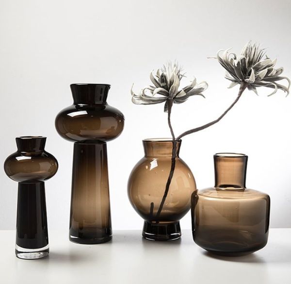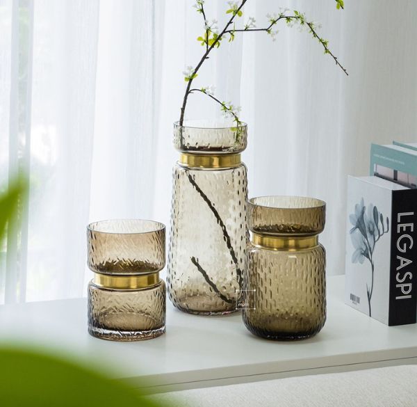 Bình Hoa Thủy Tinh Nâu Phong Cách Tháp Tầng