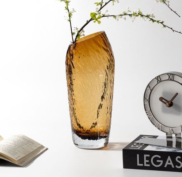 Bình hoa thủy tinh dày khối khuyết hổ phách là một mẫu bình hoa thủy tinh phá cách lý tưởng cho những ai yêu thích vẻ đẹp trầm lắng nhưng không kém phần ấn tượng.