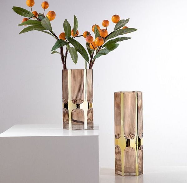 Bình Hoa Lục Giác Mạ Vàng Gân Sọc