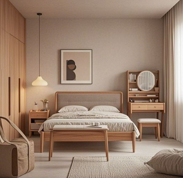 Những món đồ decor phòng ngủ đơn giản như gối tựa, thảm len hoặc đèn ngủ đặt khéo léo cũng giúp căn phòng có chiều sâu và cảm giác “đủ đầy” hơn.