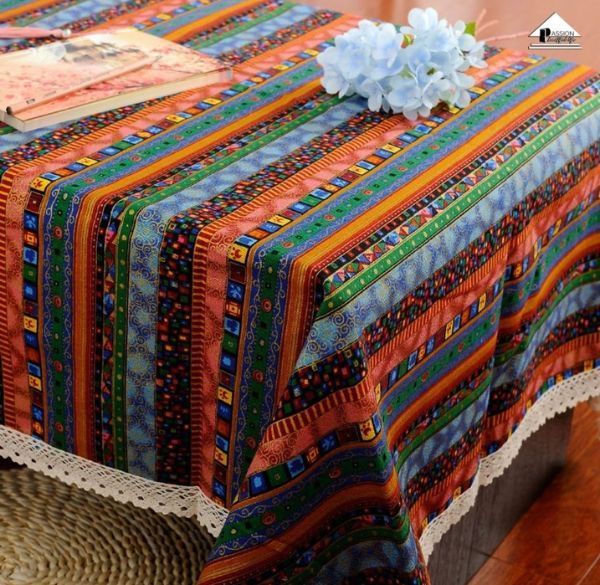 - Phong cách Bohemian - Vải thổ cẩm hoặc cotton in họa tiết: Boho phóng khoáng và đầy màu sắc. Vải thổ cẩm dệt tay hay cotton in họa tiết rực rỡ tạo cảm giác tự do. Không gian sẽ trở nên sống động, phù hợp cho những bữa tiệc ngoài trời hoặc căn hộ của người trẻ yêu nghệ thuật.