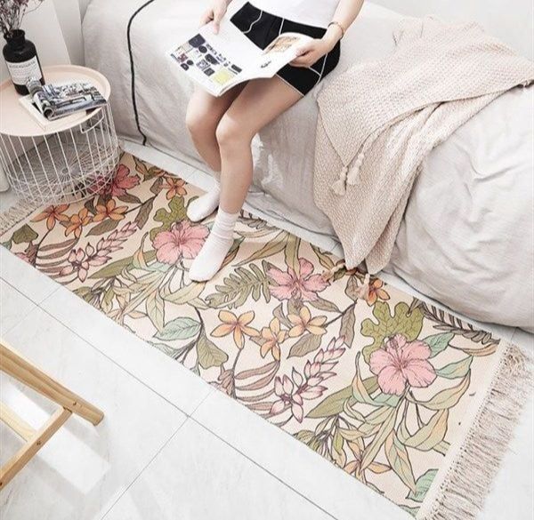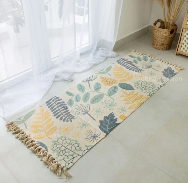 - Thảm vải cotton: thấm hút mồ hôi tốt, dễ giặt giũ, thích hợp dùng trong mùa hè.