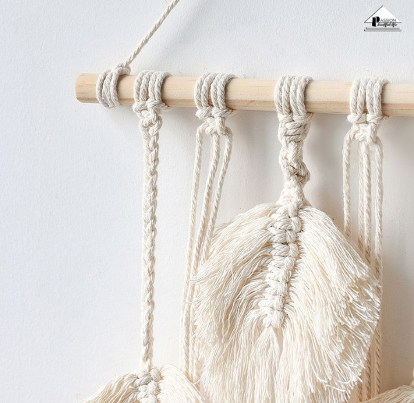 - Dùng móc treo chuyên dụng: Sử dụng thanh treo, thanh gỗ hoặc móc chuyên dụng để tránh tình trạng chùn vải hoặc biến dạng theo thời gian. Đối với thảm treo tường decor, bạn có thể dùng thanh gỗ tròn để tăng tính thẩm mỹ và hỗ trợ định hình khung tranh.
