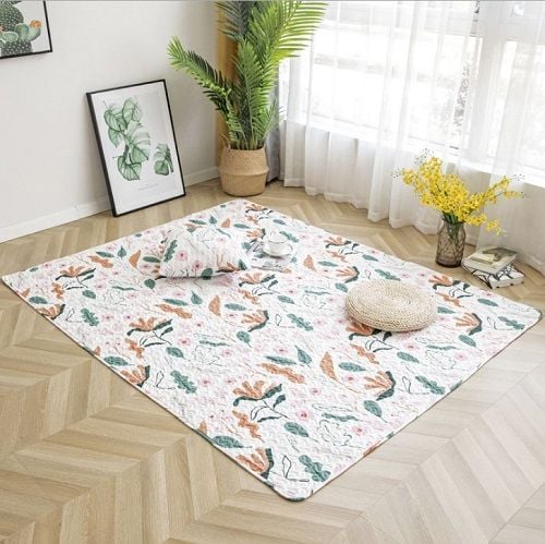 Hiện nay trên thị trường phổ biến dòng thảm cotton, có lót chần bông ở giữa, và phủ lớp nhũ chấm bi cao su chống trượt bên dưới. Nhằm mục đích để trang trí đẹp mà chất liệu cotton mềm mại, thân thiện với da của bé, là lựa chọn tốt cho các mẹ có thể mua cho bé ngồi vui chơi, nằm ngủ trưa. Còn là sản phẩm tiện lợi dùng để nghỉ trưa ở văn phòng.