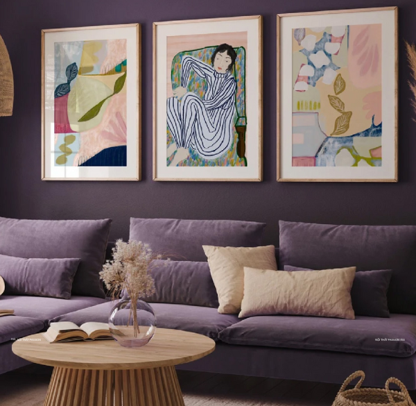 - Bố cục tranh: Tránh tranh quá nhỏ lẻ tẻ hoặc quá lớn áp đảo không gian. Bộ ba tranh nhỏ cách điệu hoặc tranh đơn lớn đều có thể áp dụng, miễn sao tổng thể hài hòa.