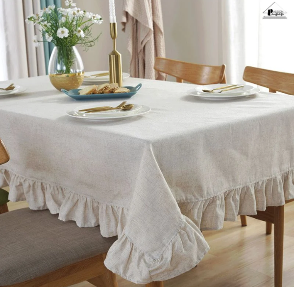 - Kiểu dáng phổ biến là khăn trải bàn chữ nhật và khăn trải bàn tròn, tùy theo hình dáng mặt bàn của bạn.