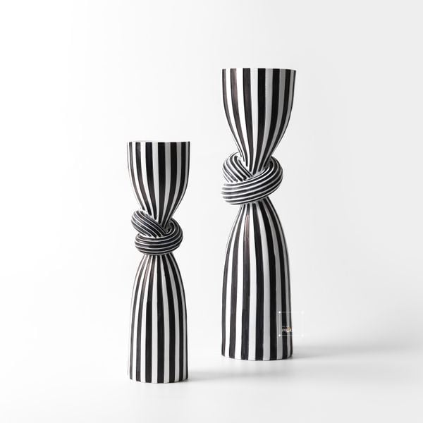 2. Chân nến trang trí sáng tạo hình thắt nút sọc trắng đen