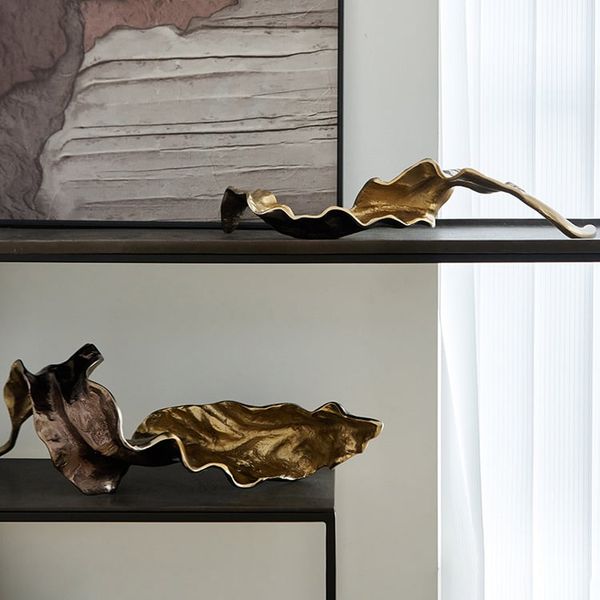 Tượng trang trí chiếc lá khô metal 2 màu nâu vàng