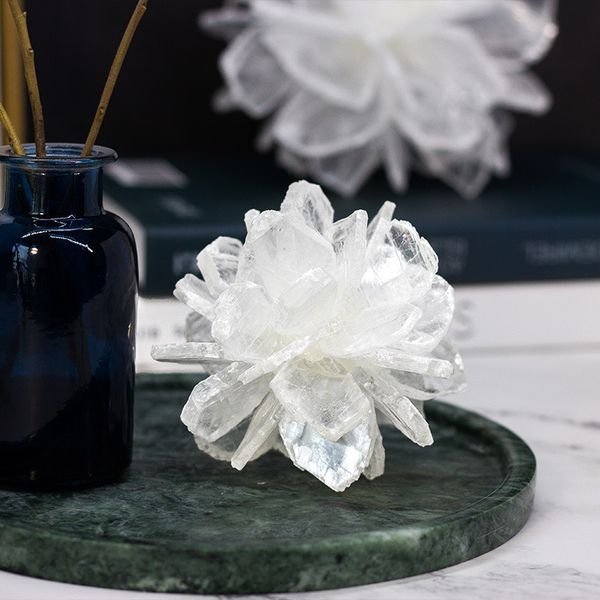 Với màu sắc trắng đục trong suốt, tượng hoa toát lên vẻ đẹp nhẹ nhàng và thanh thoát nổi bật giữa không gian đầy màu sắc. Hình ảnh quả cầu hoa pha lê không chỉ mang mang tính thẩm mỹ cho không gian, mà còn thể hiện phong cách sống tối giản và thanh lịch của gia chủ.