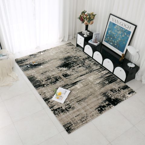 Thảm Lông Sợi Ngắn Dệt Màu Dập Sợi Viền Loang Xám Đen