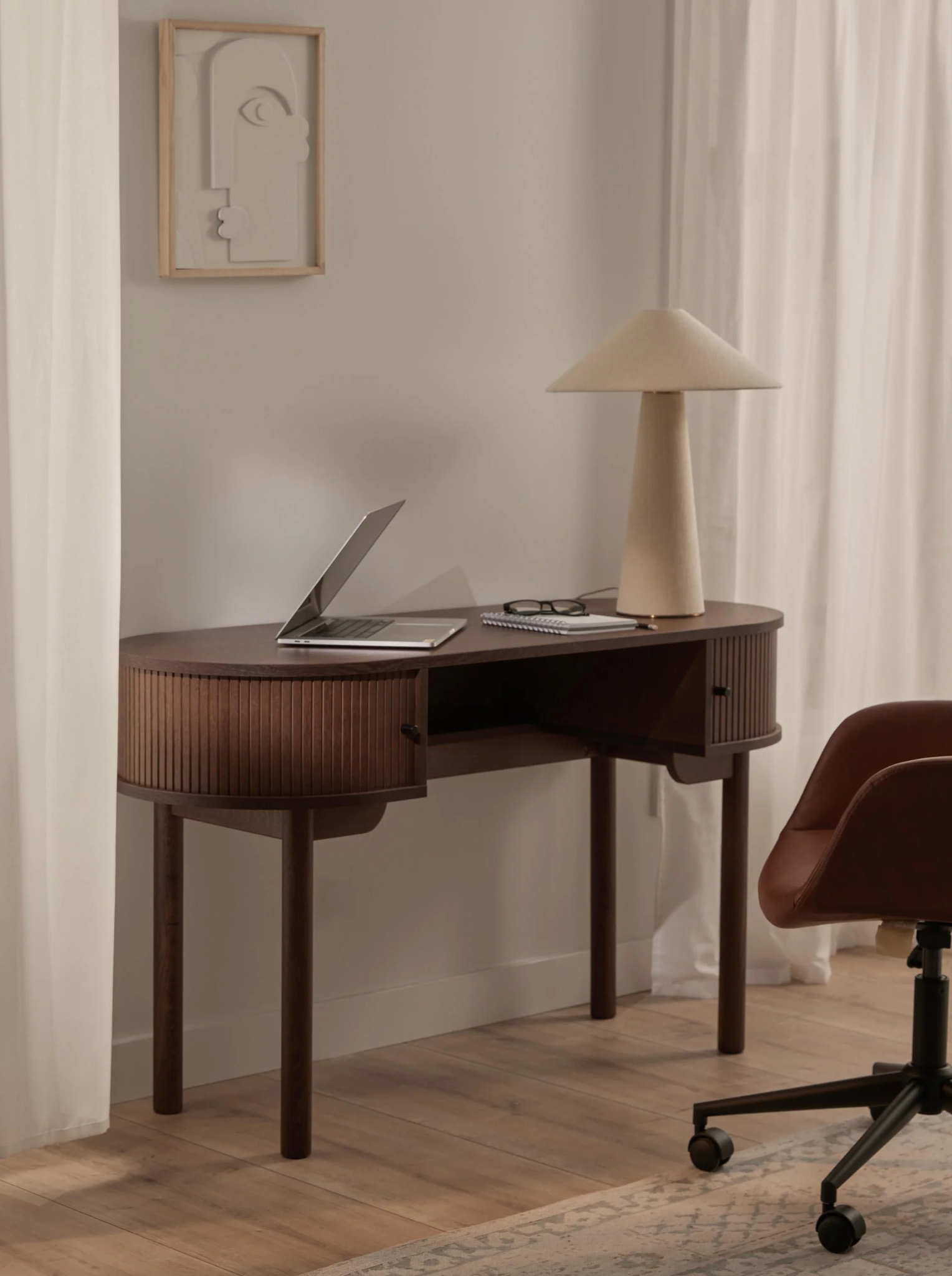 Bàn Gỗ Bo Tròn Có Ngăn Kéo Elora Curved – Vẻ Đẹp Sang Trọng Gắn Liền Với Tiện Ích