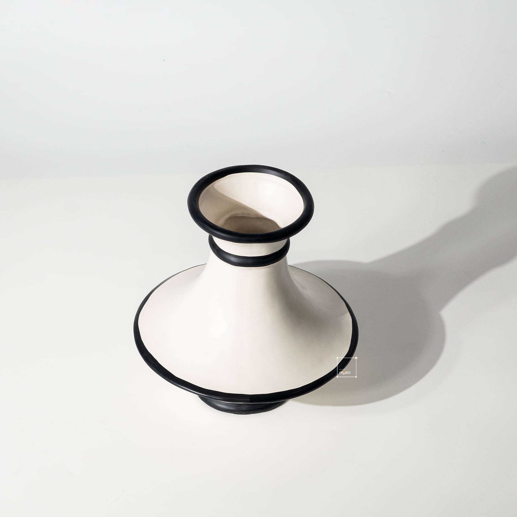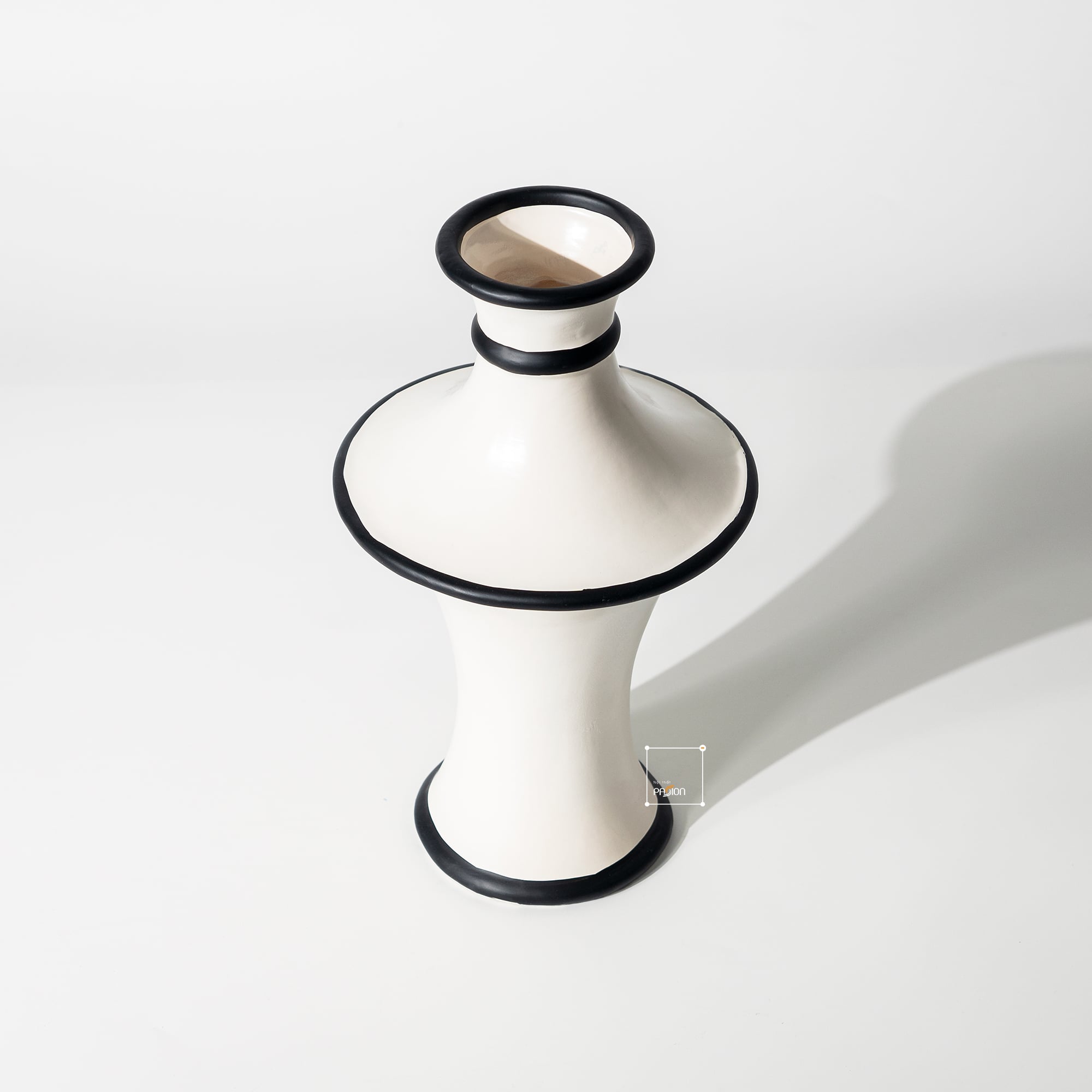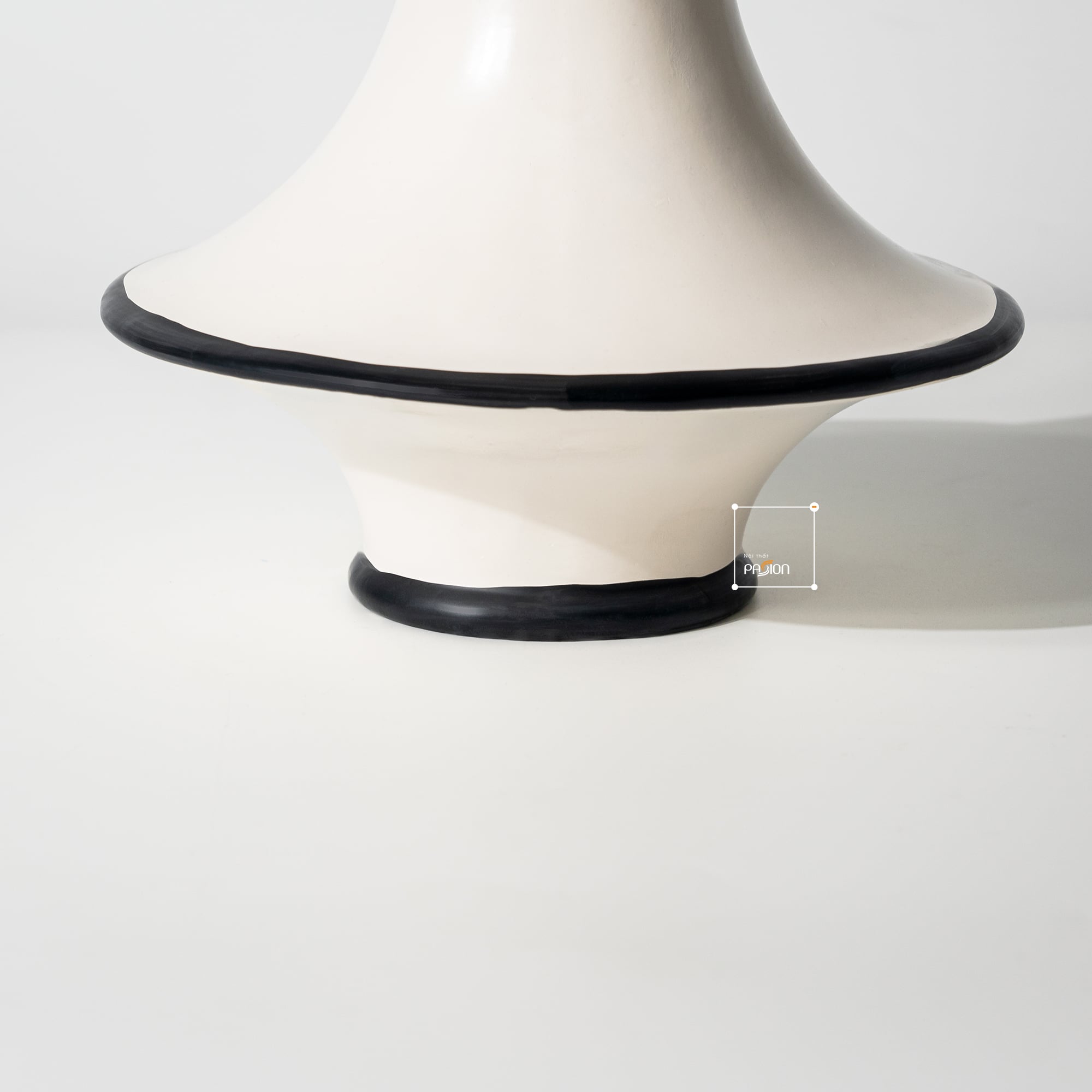 Lấy cảm hứng từ phong cách kiến trúc và nghệ thuật Pháp, bình hoa gốm kiểu Pháp phối vòng đen là sự kết hợp hài hòa giữa đường cong mềm mại và gam màu tương phản tinh tế. Màu trắng sứ được phủ bóng mịn màng, điểm nhấn là những đường viền đen mảnh chạy quanh miệng và thân bình, tạo nên sự cân bằng hoàn hảo giữa cổ điển và hiện đại.
