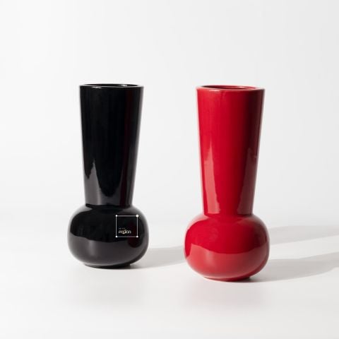 Bình Hoa Gốm Sứ Phủ Bóng Đen Đỏ Sang Trọng
