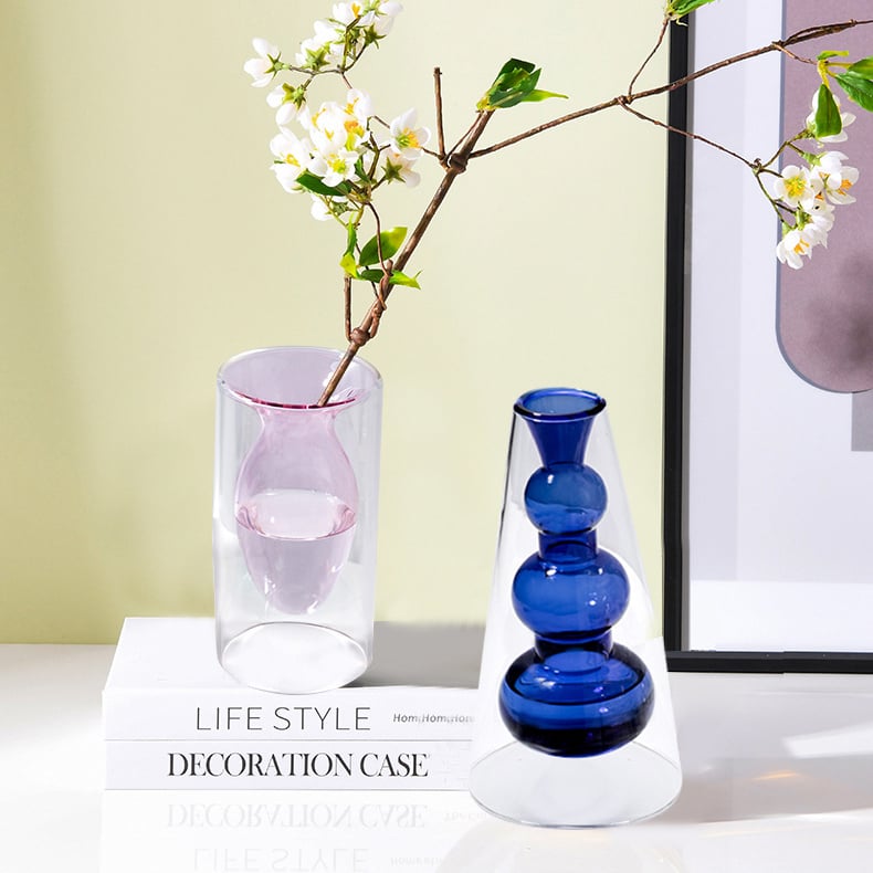 Bình Hoa Thủy Tinh 2 Lớp 2 Màu Sáng Tạo Glasses
