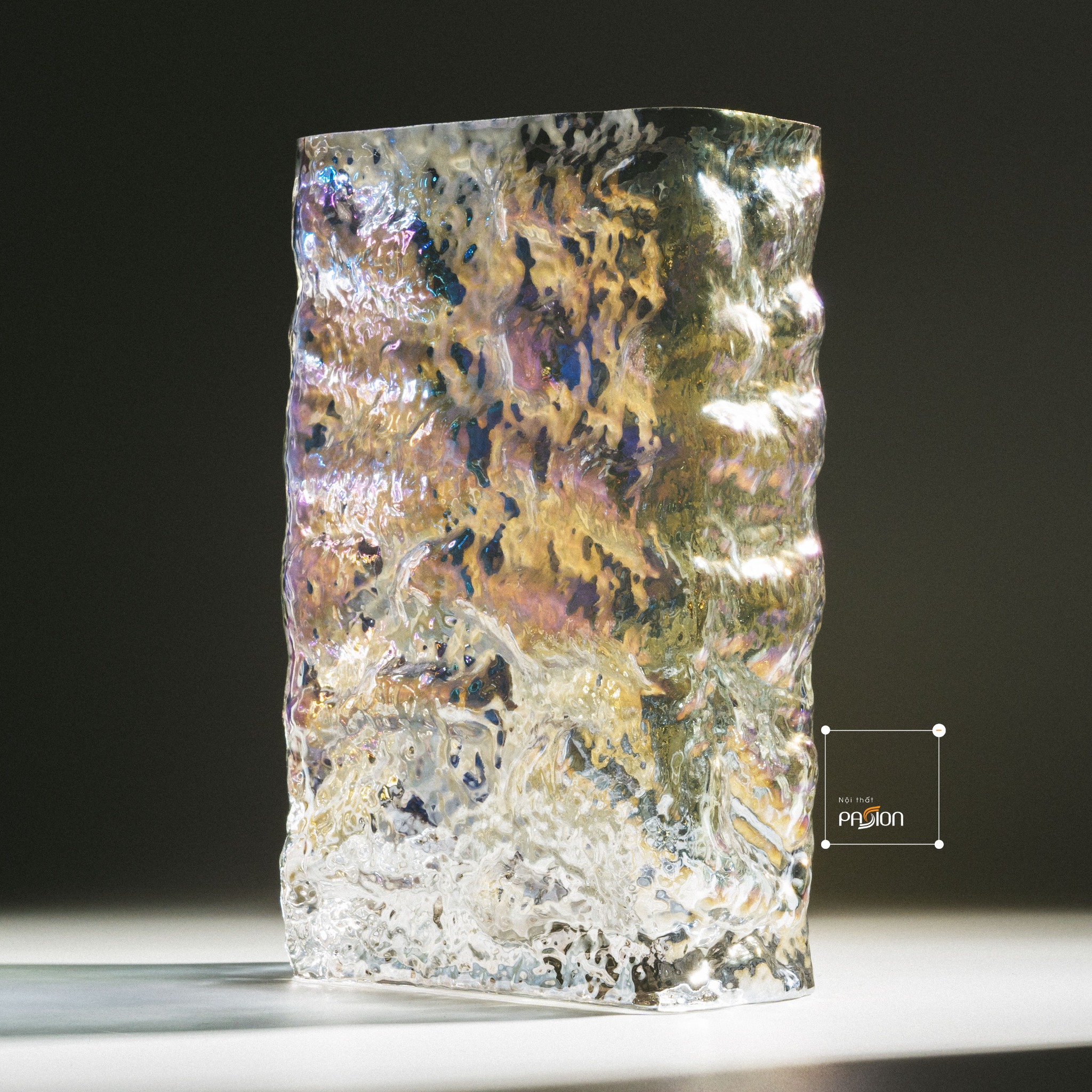 Thủy tinh là một chất rắn không màu, trong suốt, không gỉ. Do là chất rắn không màu, nên ánh sáng sẽ dễ dàng truyền qua chiếc bình, mang đến một vẻ đẹp kiêu sa, long lanh và lộng lẫy. Vẻ đẹp long lanh, lóng lánh của thủy tinh sẽ khiến cho bạn bị thu hút ngay từ ánh nhìn đầu tiên. Chính vì những lý do này, mà tác giả đã sáng tạo ra chiếc bình hoa xinh đẹp với chất liệu thủy tinh trong suốt này.