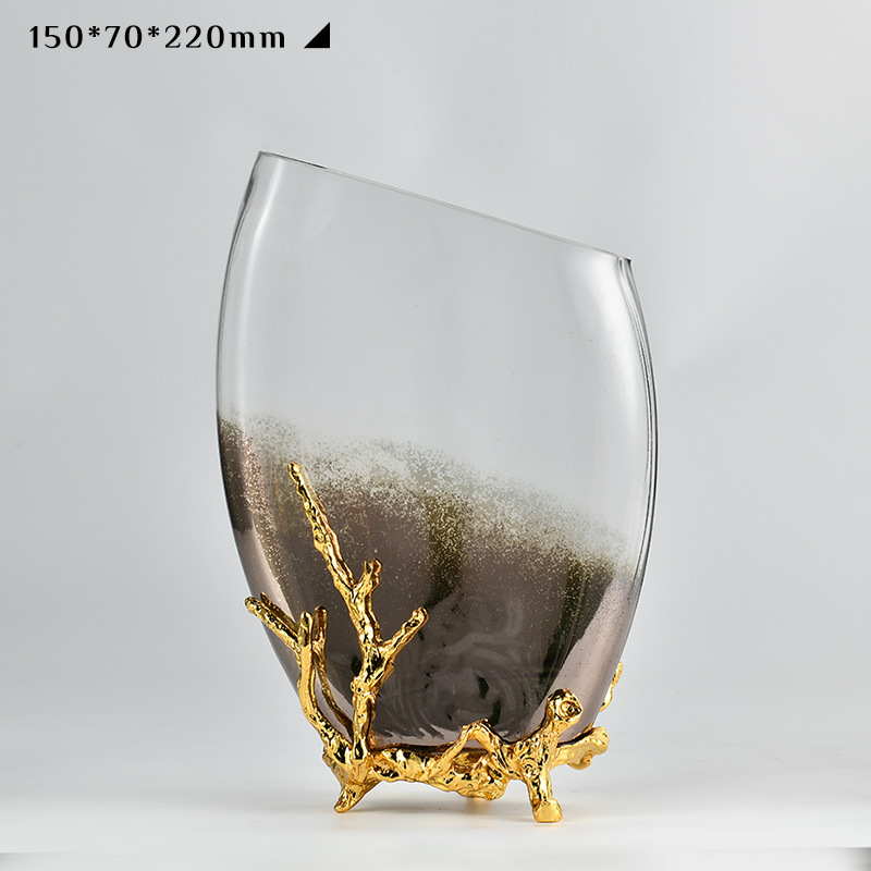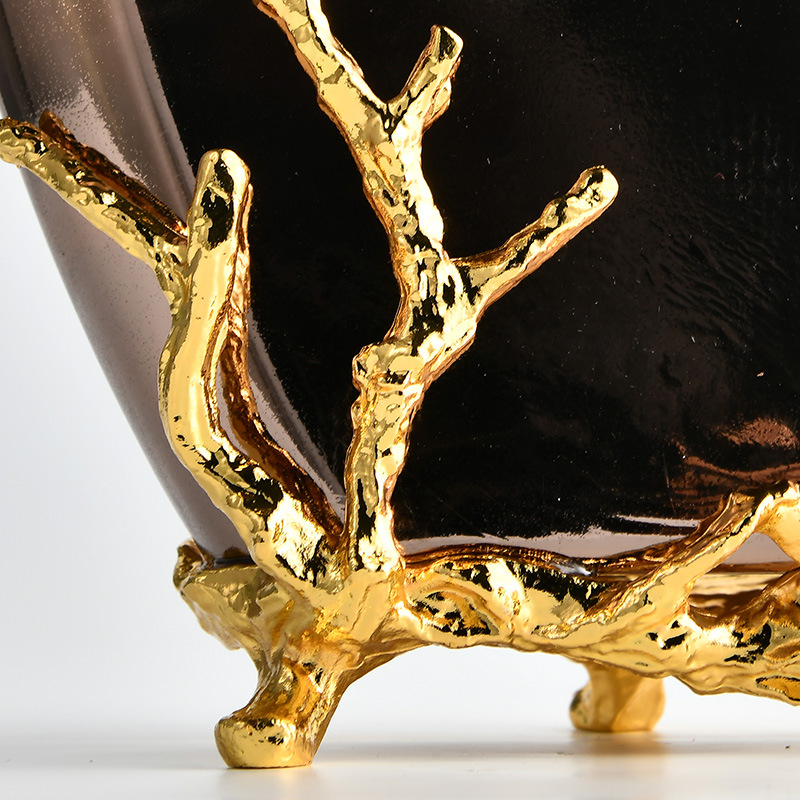 Bình Hoa Thủy Tinh Gradient Nâu Chân Đế Vàng – Sang Trọng & Hiện Đại