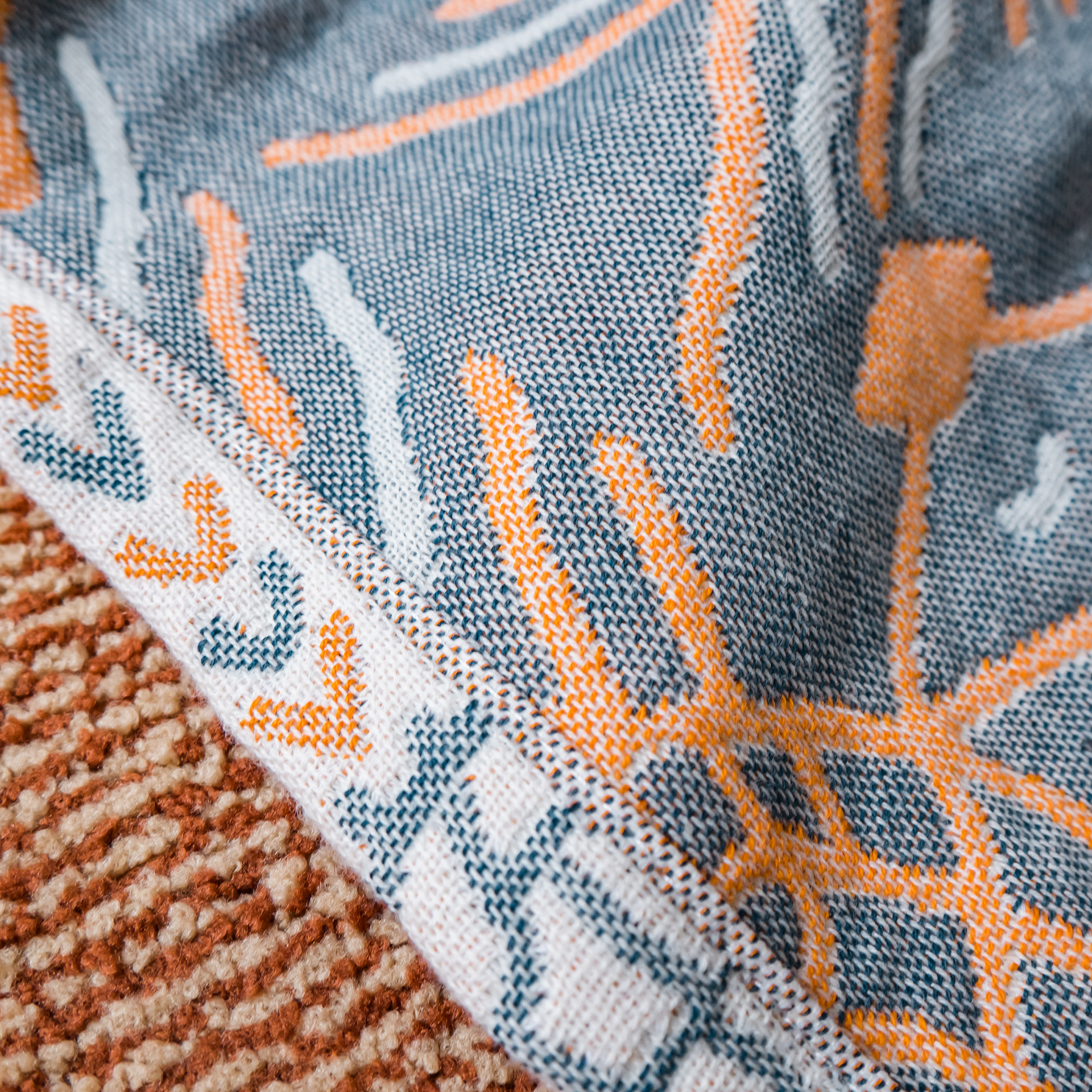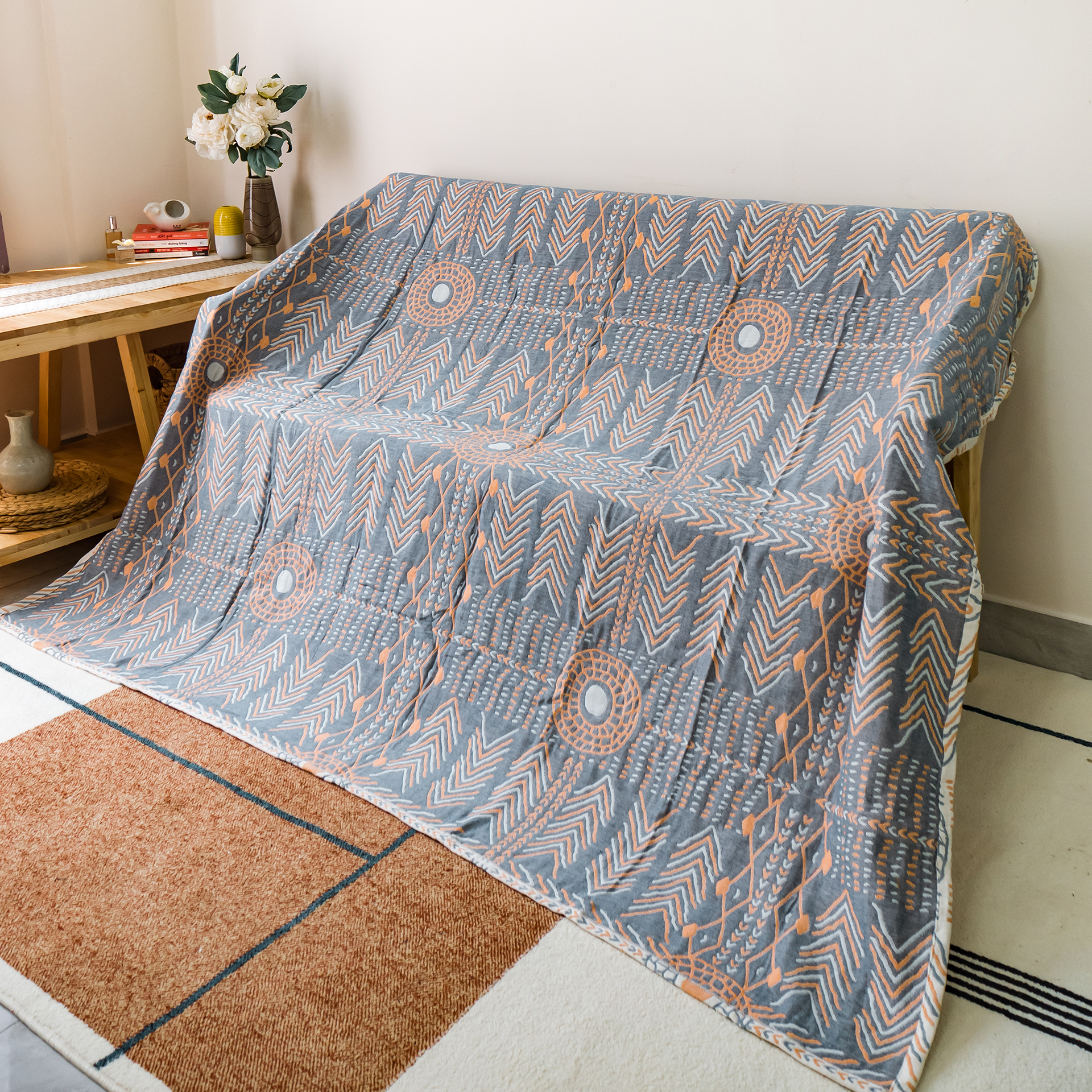 Chăn Linen Làm Thảm Phủ Sofa Trang Trí Nhật Bản Hoa Tròn 2 Mặt KHUYẾN MÃI - ƯU ĐÃI