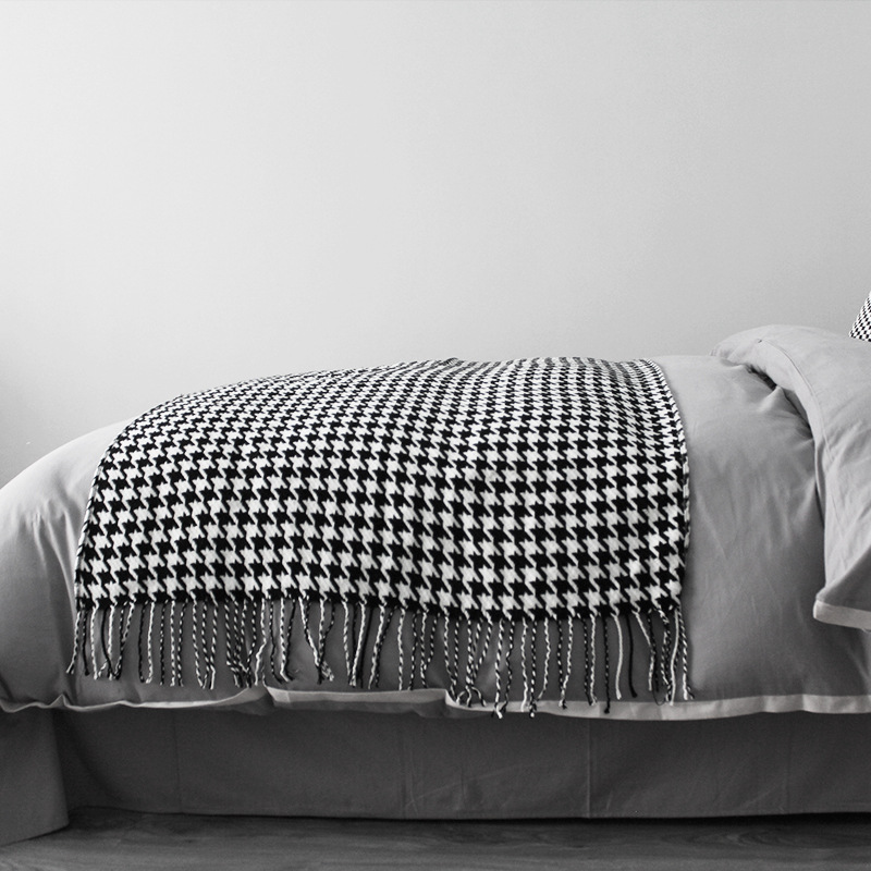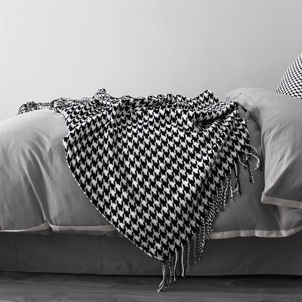 Chăn phủ giường với họa tiết răng sói (Houndstooth) là một lựa chọn độc đáo và đầy phong cách cho phòng ngủ của bạn. Họa tiết này có nguồn gốc từ Scotland, ban đầu được sử dụng cho trang phục nam giới, nhưng sau đó đã trở nên phổ biến trong lĩnh vực thời trang và thiết kế nội thất.