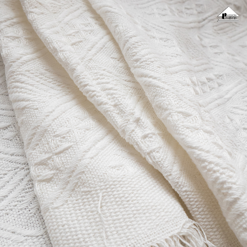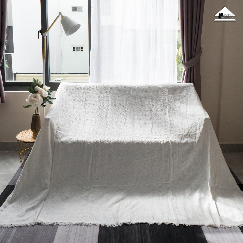 Chăn thảm phủ ghế sofa đan len tua rua màu trắng lưới KHUYẾN MÃI - ƯU ĐÃI