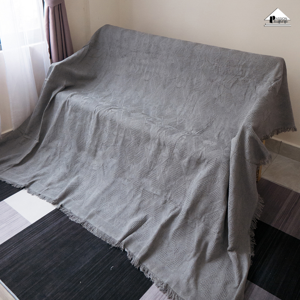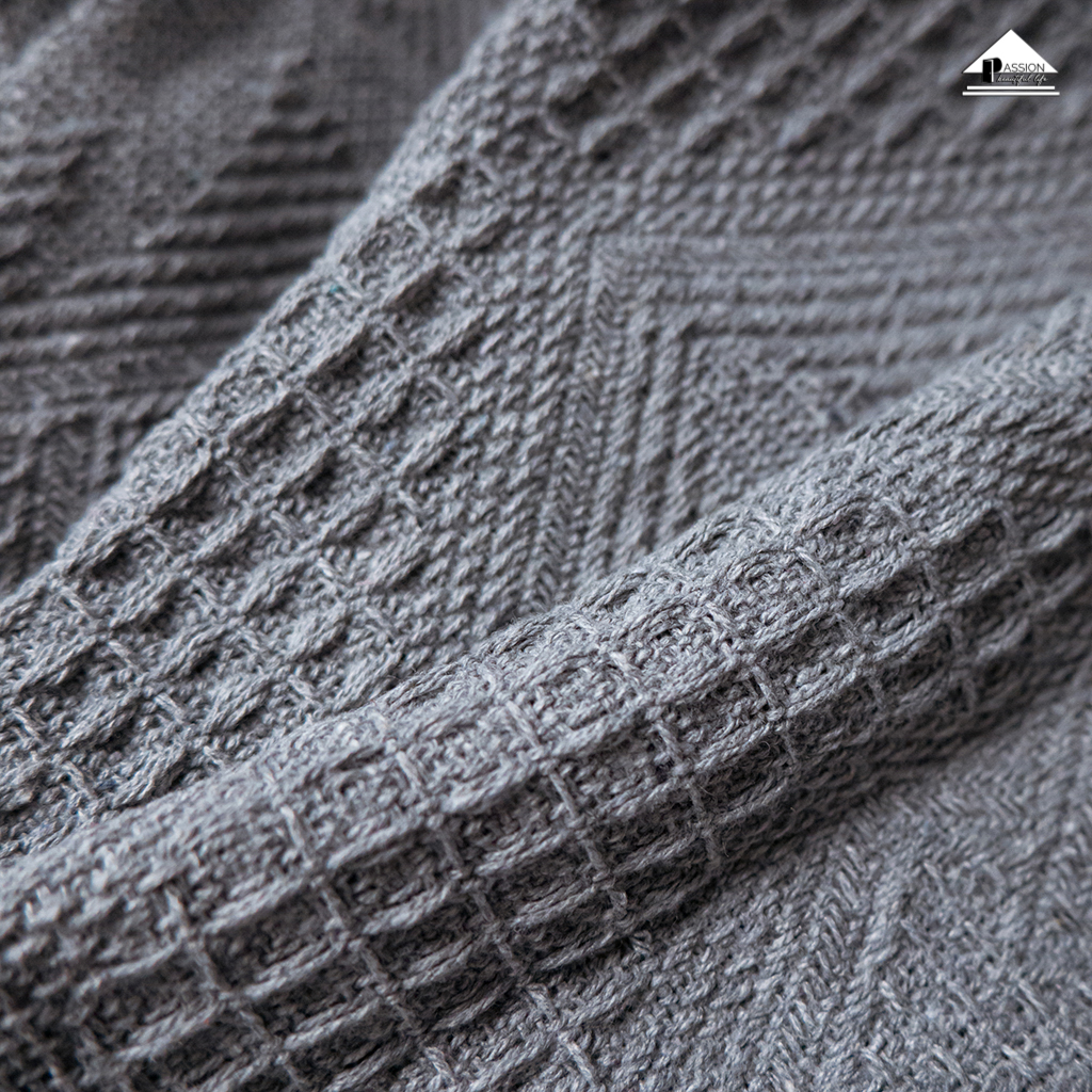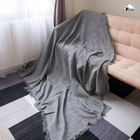 Chăn thảm phủ ghế sofa đan len tua rua màu xám lưới KHUYẾN MÃI - ƯU ĐÃI