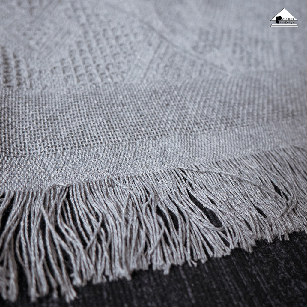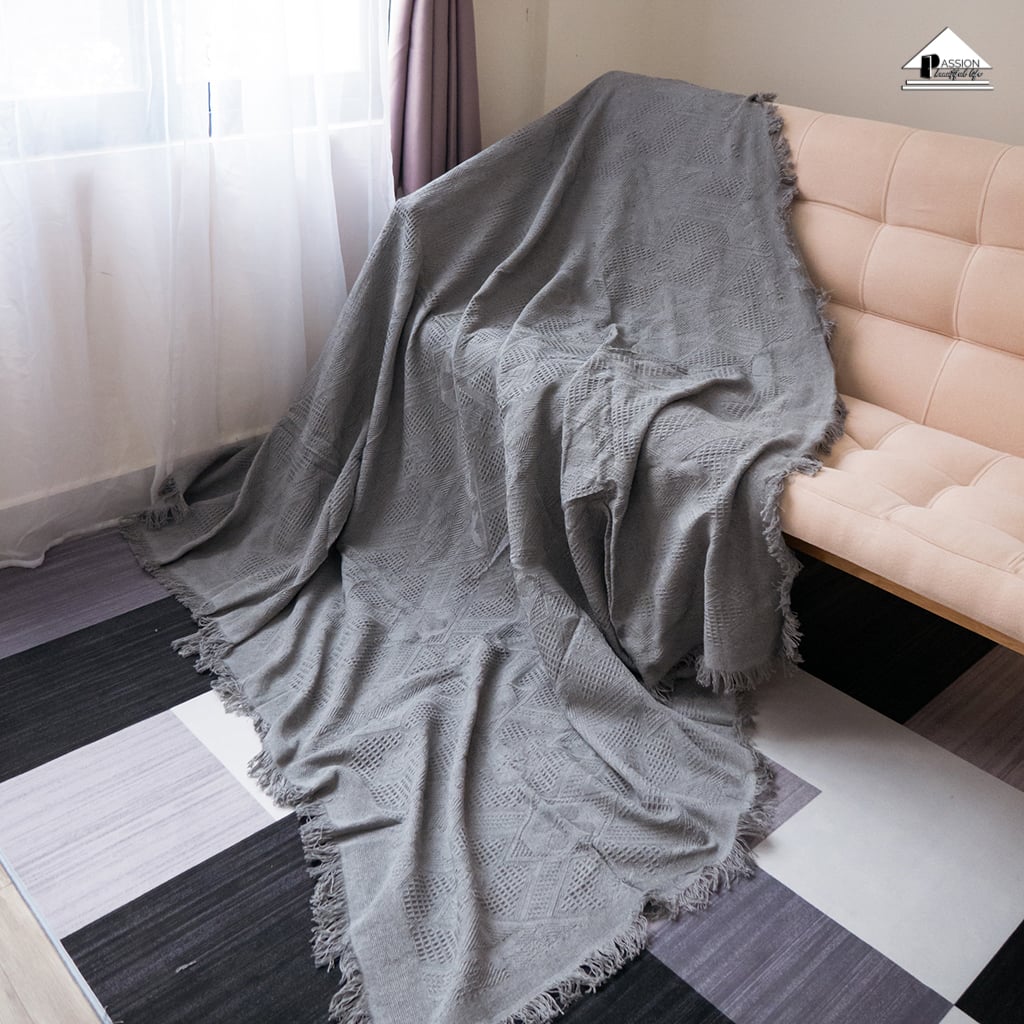 Chăn thảm phủ ghế sofa đan len tua rua màu xám lưới
