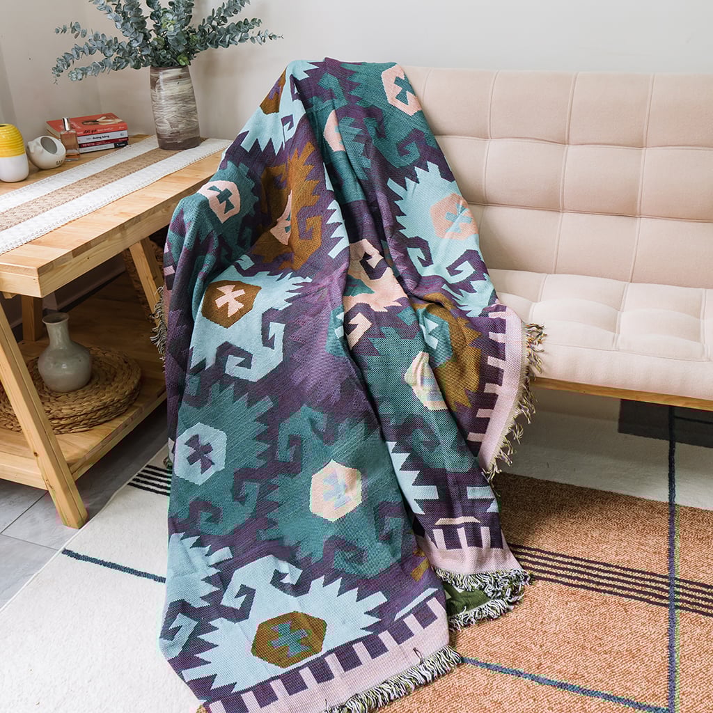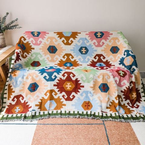 - Có thể dùm làm khăn phủ, tấm phủ sofa, ghế mây, giường, hoặc dùng làm thảm trải khi đi du lịch, picnic