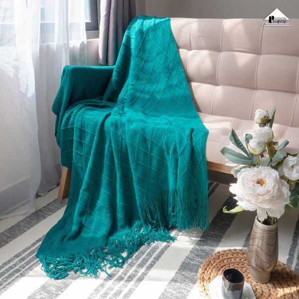 Chăn Thun Đan Len Phủ Ghế Sofa Trang Trí Giường Dệt Hình Thoi - Xanh Cổ Vịt KHUYẾN MÃI - ƯU ĐÃI