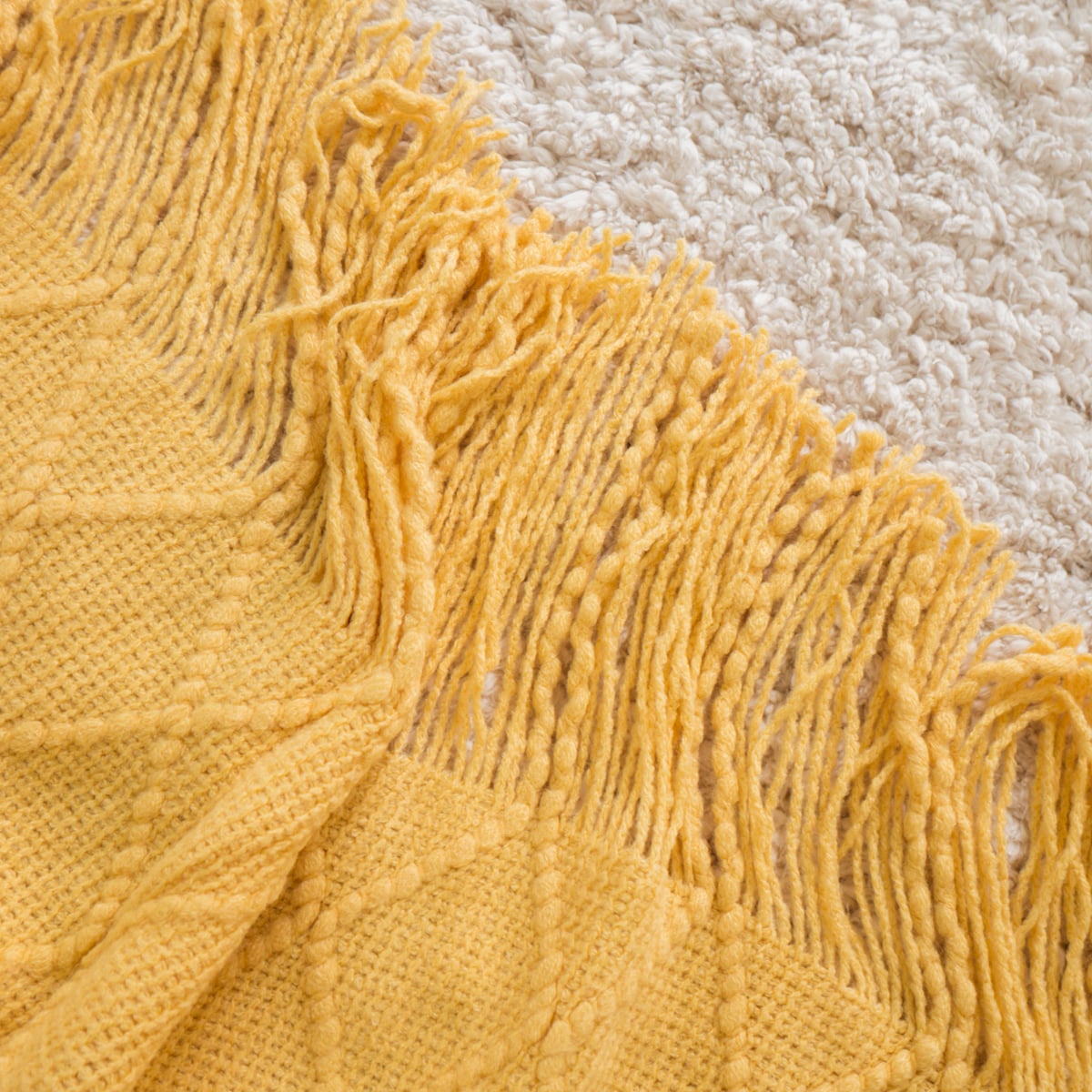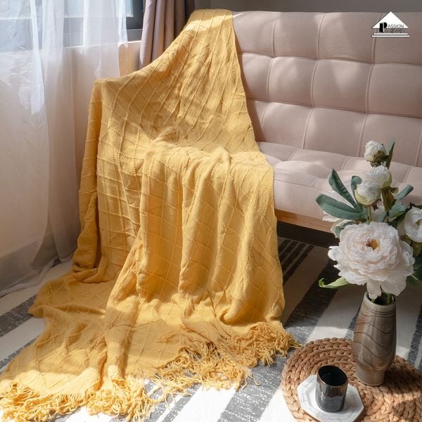 Chăn Thun Đan Len Phủ Ghế Sofa Trang Trí Giường Dệt Hình Thoi - Vàng KHUYẾN MÃI - ƯU ĐÃI