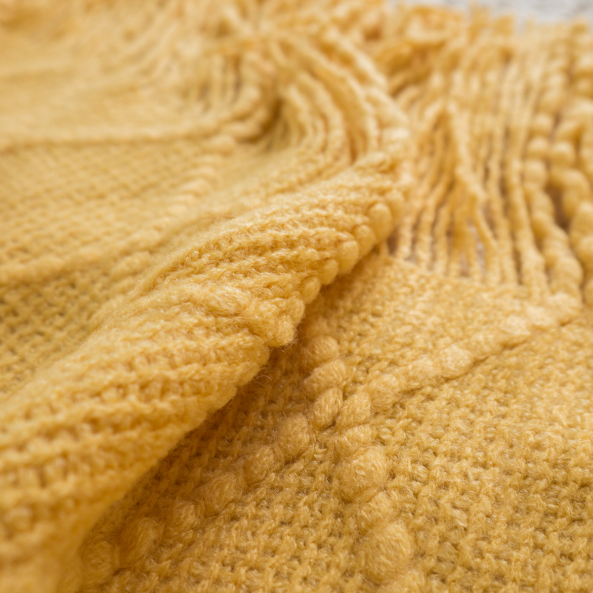Chăn Thun Đan Len Phủ Ghế Sofa Trang Trí Giường Dệt Hình Thoi - Vàng