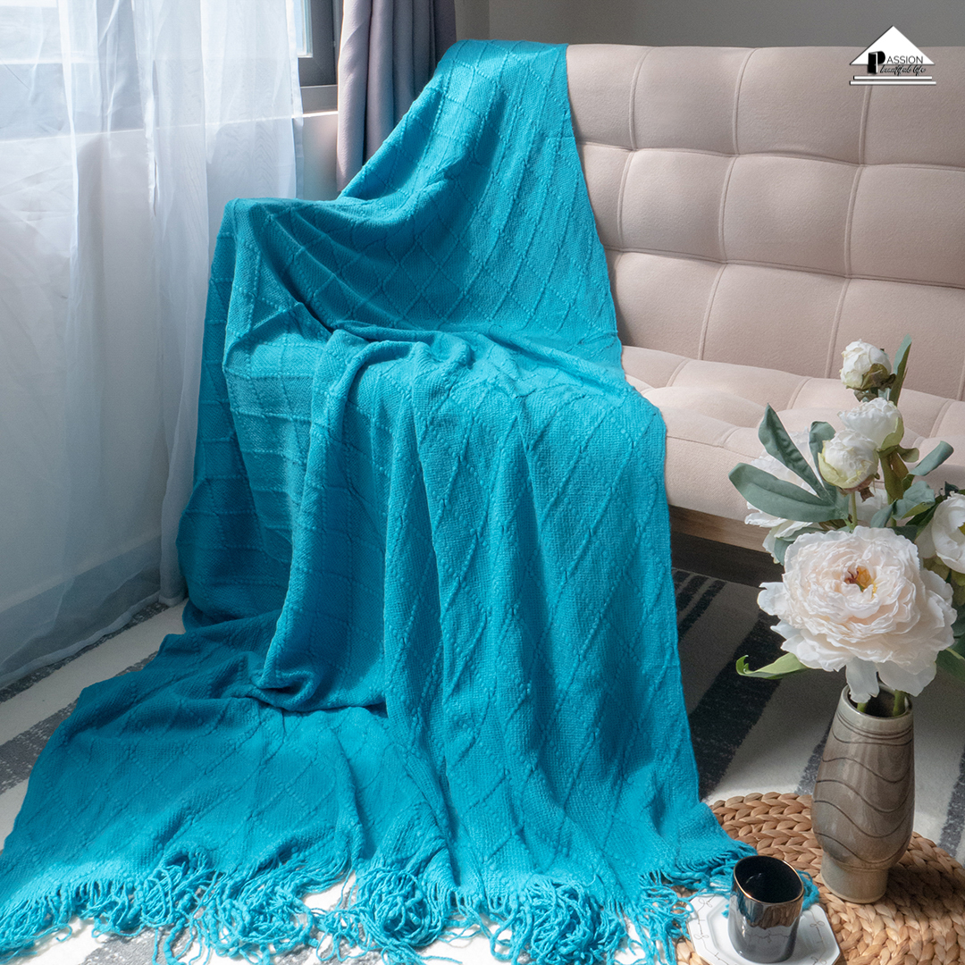 Chăn Thun Đan Len Phủ Ghế Sofa Trang Trí Giường Dệt Hình Thoi - Xanh ngọc KHUYẾN MÃI - ƯU ĐÃI