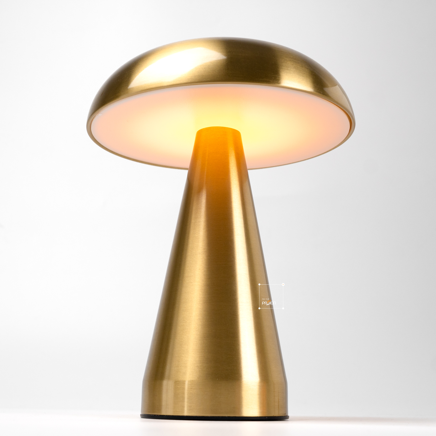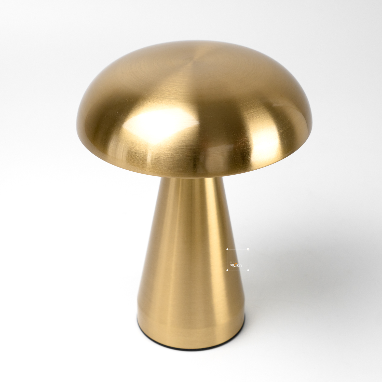 Mẫu thiết kế đèn này có hình dáng khá độc đáo hình cây nấm với màu vàng ánh đồng sang trọng, mang đến không gian ấm áp nhưng cũng vô cùng thú vị cho không gian nhà bạn. Sản phẩm có thiết kế vô cùng tiện lợi, nhỏ gọn, sử dụng pin 1800mA, dùng được trong 12h sau khi sạc đầy. Bạn có thể sử dụng sản phẩm để decor trong nhiều không gian khác nhau: phòng ngủ, bàn làm việc,... Hoặc những không gian đơn giản, nhẹ nhàng sẽ rất thích hợp.
