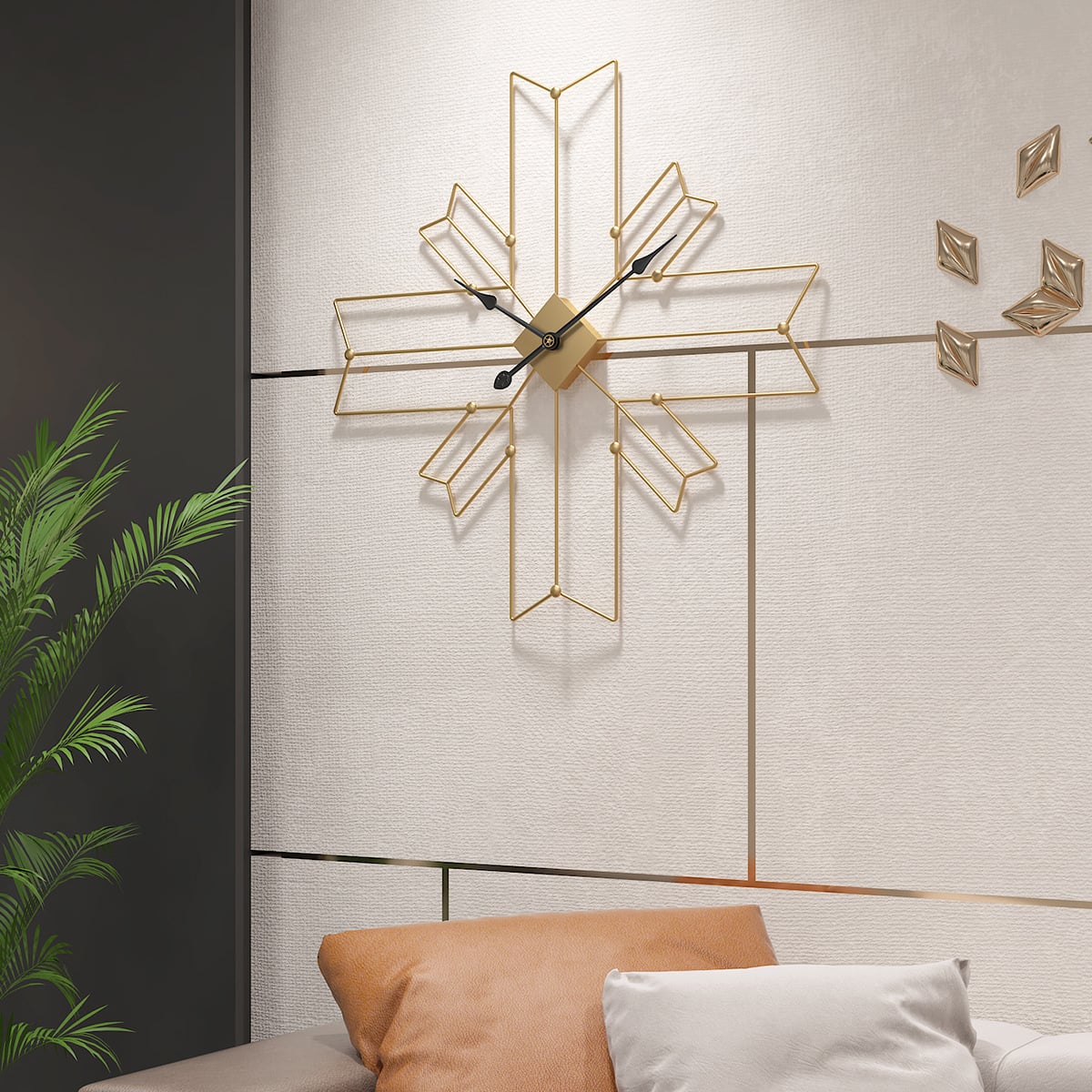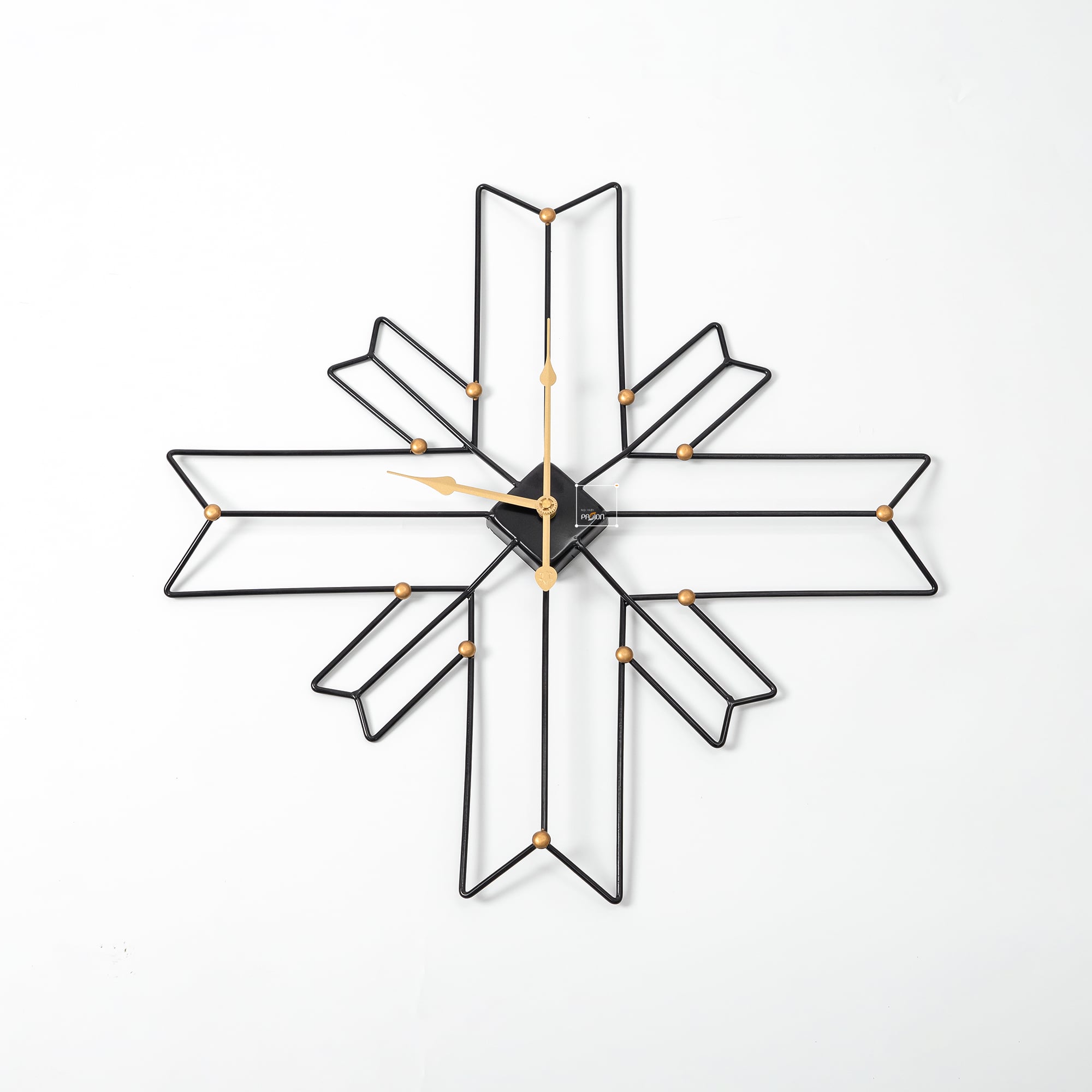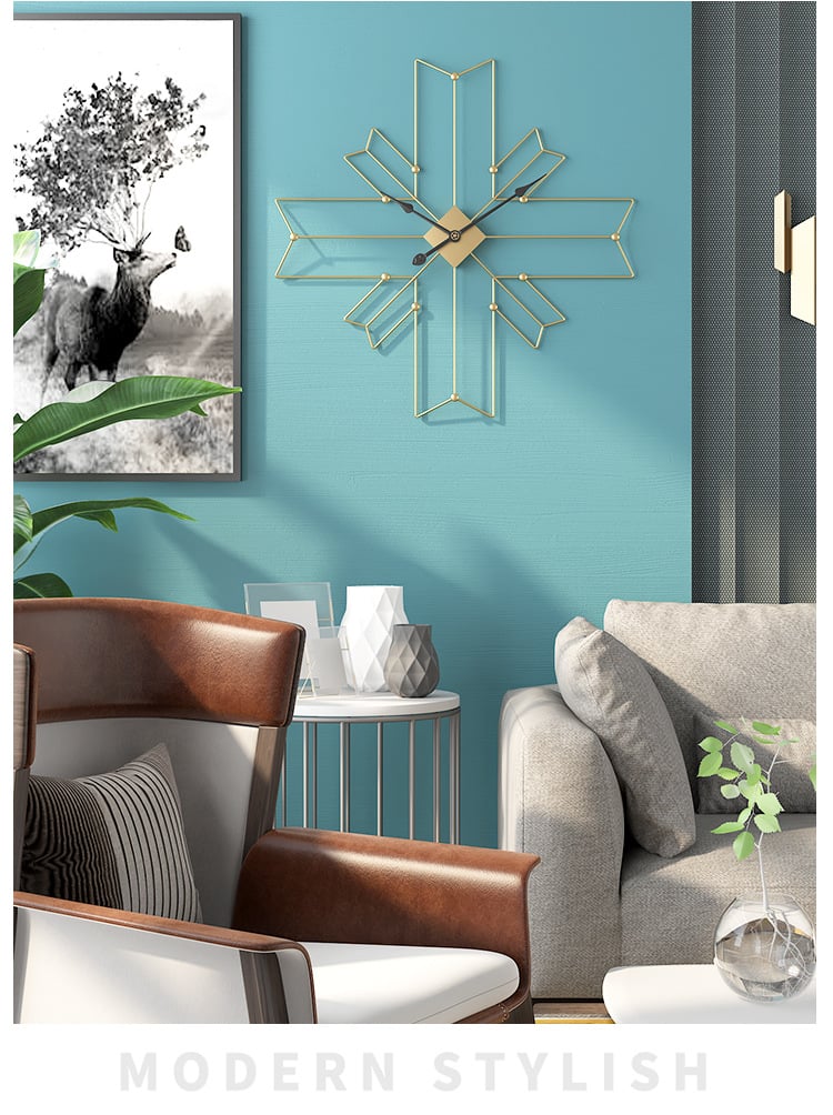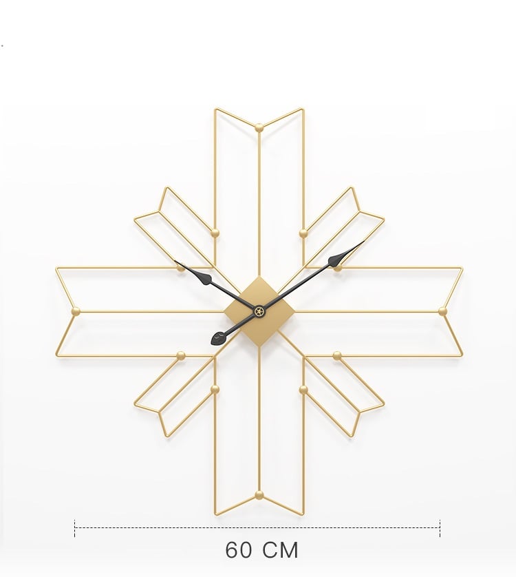 Đồng Hồ Treo Tường Kim Loại Đa Giác Chéo được Thiết kế đặc trưng với hình ảnh dấu thập cùng 4 mũi tên bắt chéo sang trọng, trên nền kim loại sắt chắc chắn, dày dặn, được phủ ánh vàng độc đáo, kiến tạo không gian sống sáng và sang trọng.