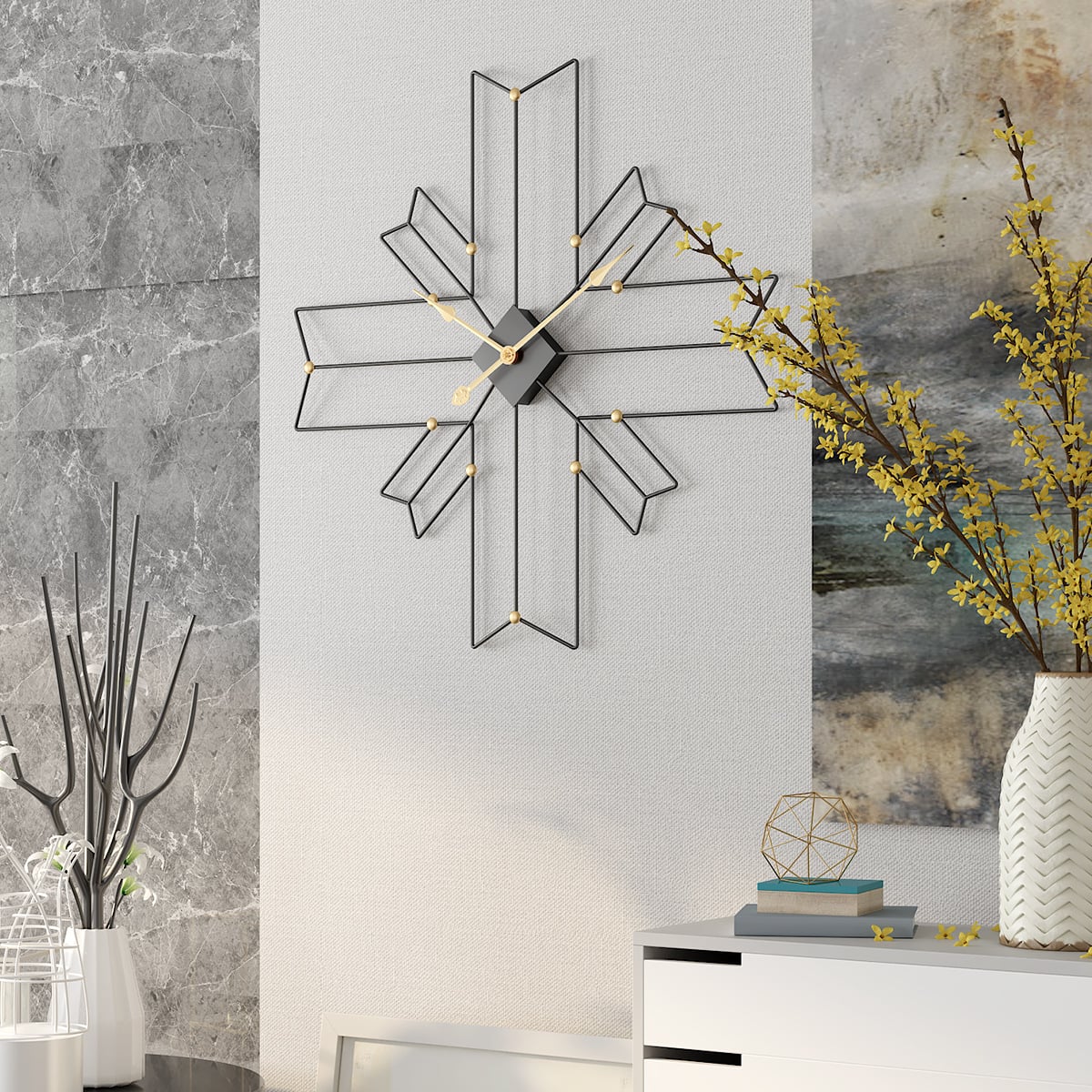 Đồng Hồ Treo Tường Kim Loại Đa Giác Chéo