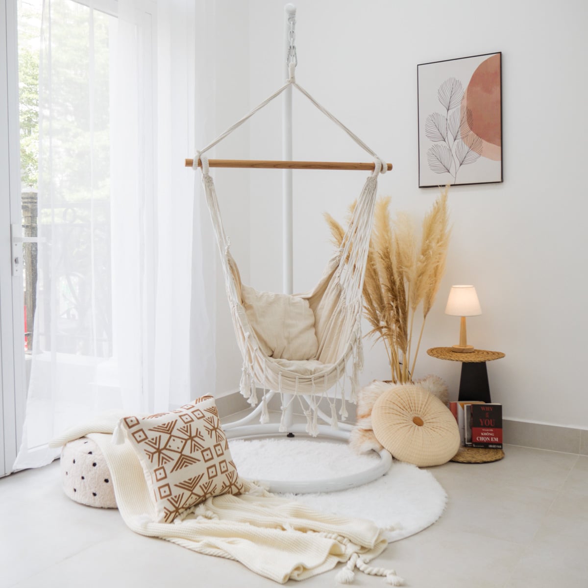 Võng Ghế Tròn Vintage phong cách Nordic được đặc biệt ưa chuộng ở Hàn Quốc, Nhật Bản, Trung Quốc, ... bởi chỉ với chiếc võng bạn đã tạo nên không gian thật chill tại nhà.