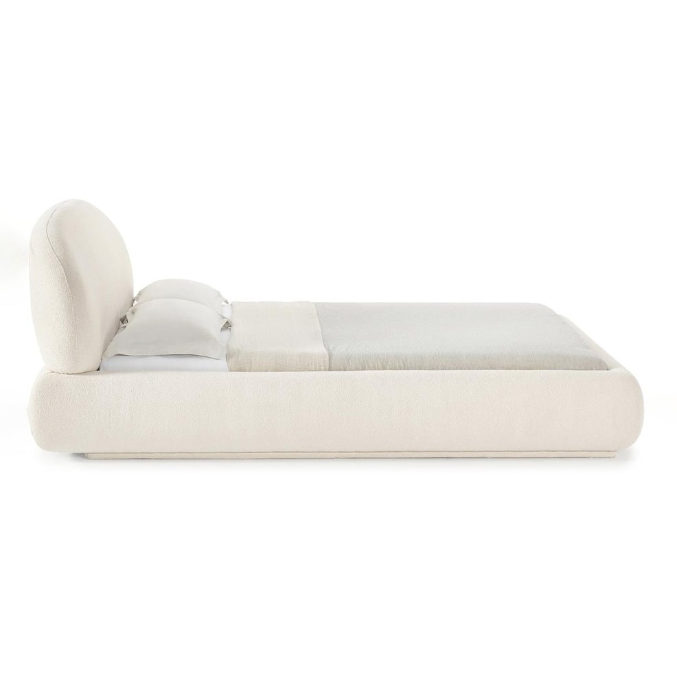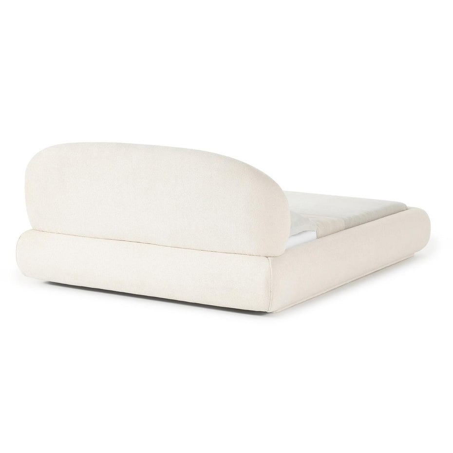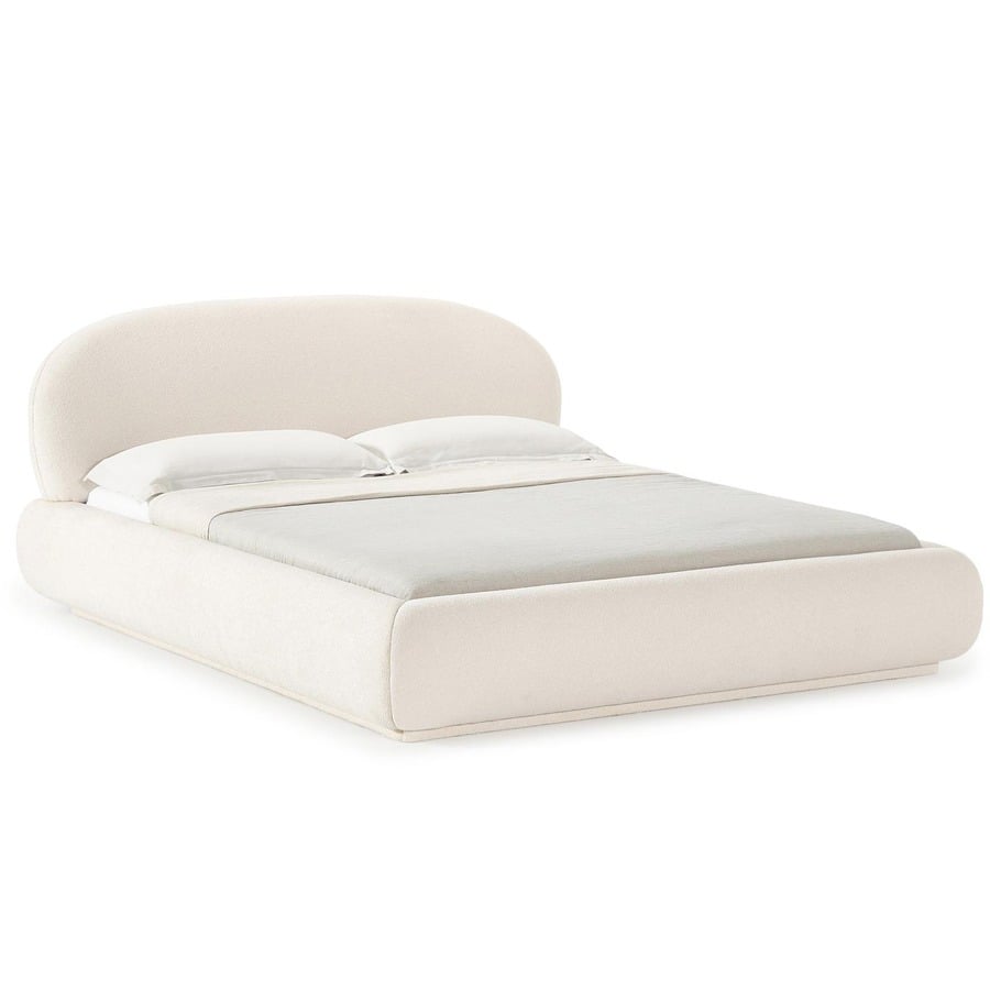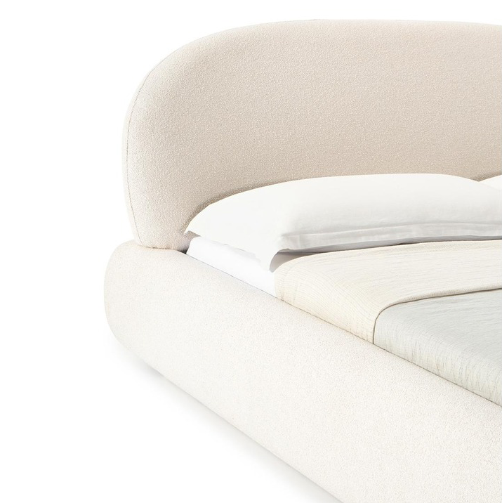 Điểm đặc biệt của giường ngủ bo cong Cloud chính là phần khung và chân gỗ uốn lượn tinh tế, mang lại cảm giác mềm mại và bay bổng. Đầu giường bọc nệm bo cong nhẹ nhàng, vừa tăng tính thẩm mỹ, vừa mang đến sự thoải mái tối đa khi tựa lưng đọc sách hay thư giãn.