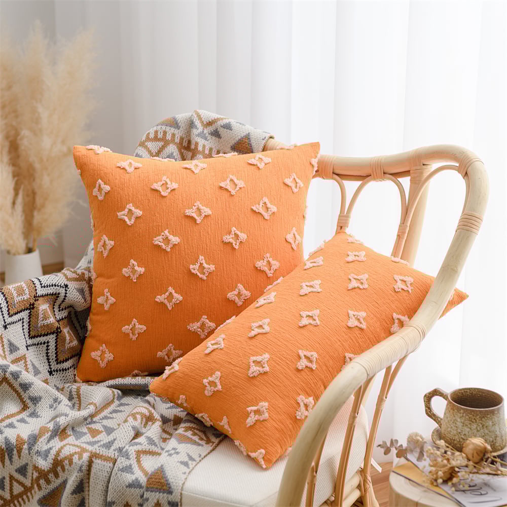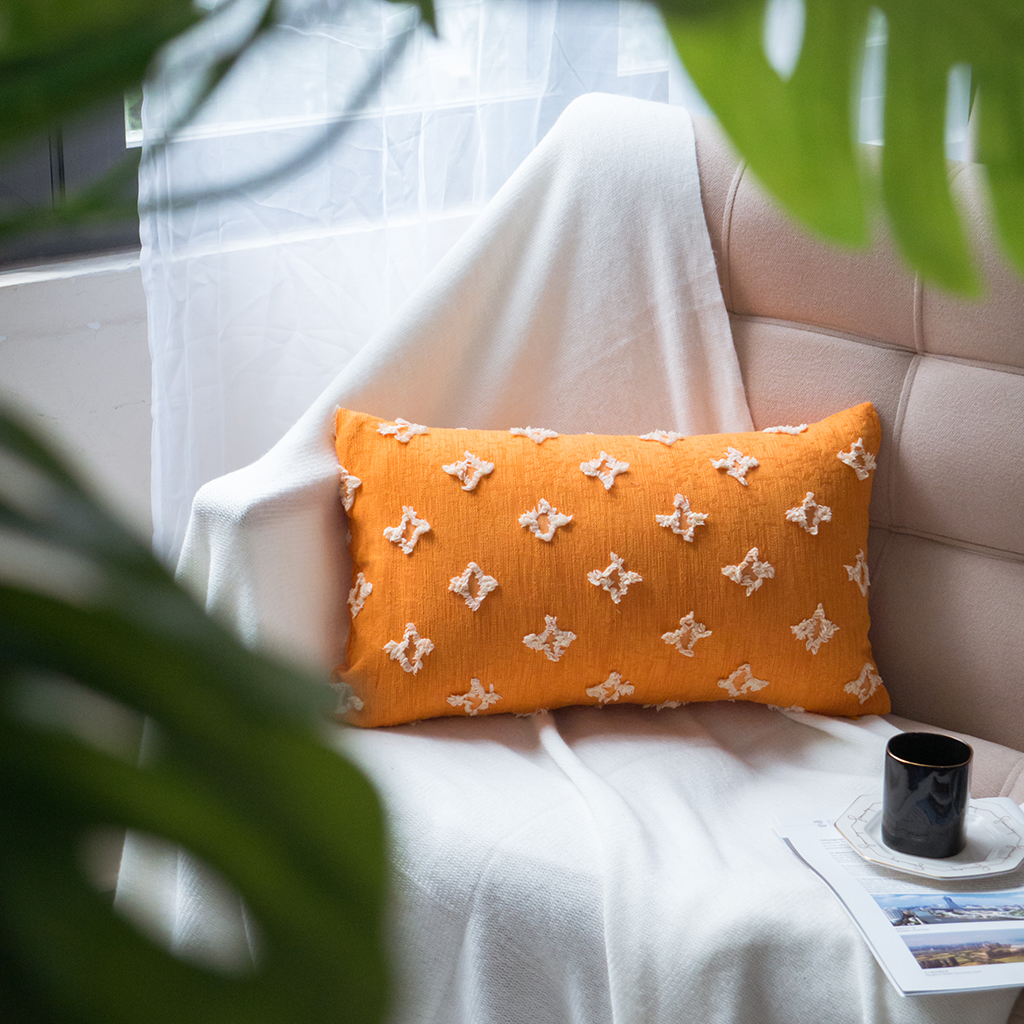 Là một giải pháp tối ưu cho những khách hàng muốn nhấn không gian bằng màu sắc nổi bật mà không cầu kỳ, phức tạp. Gối màu trơn điểm xuyết thêm những bông hoa tua rua nổi đối xứng. Tạo nên một cảm giác hài hòa dễ chịu cho tất cả các không gian dù lớn hay nhỏ.