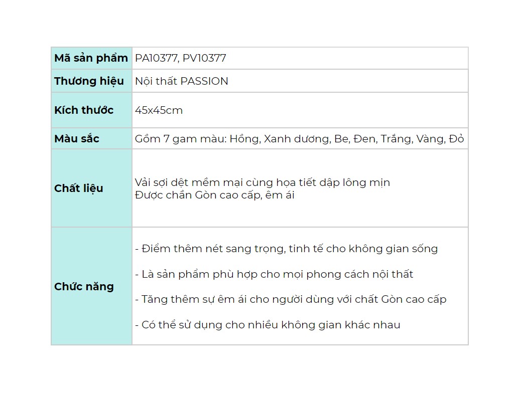 • Kích thước sản phẩm: 45x45cm
