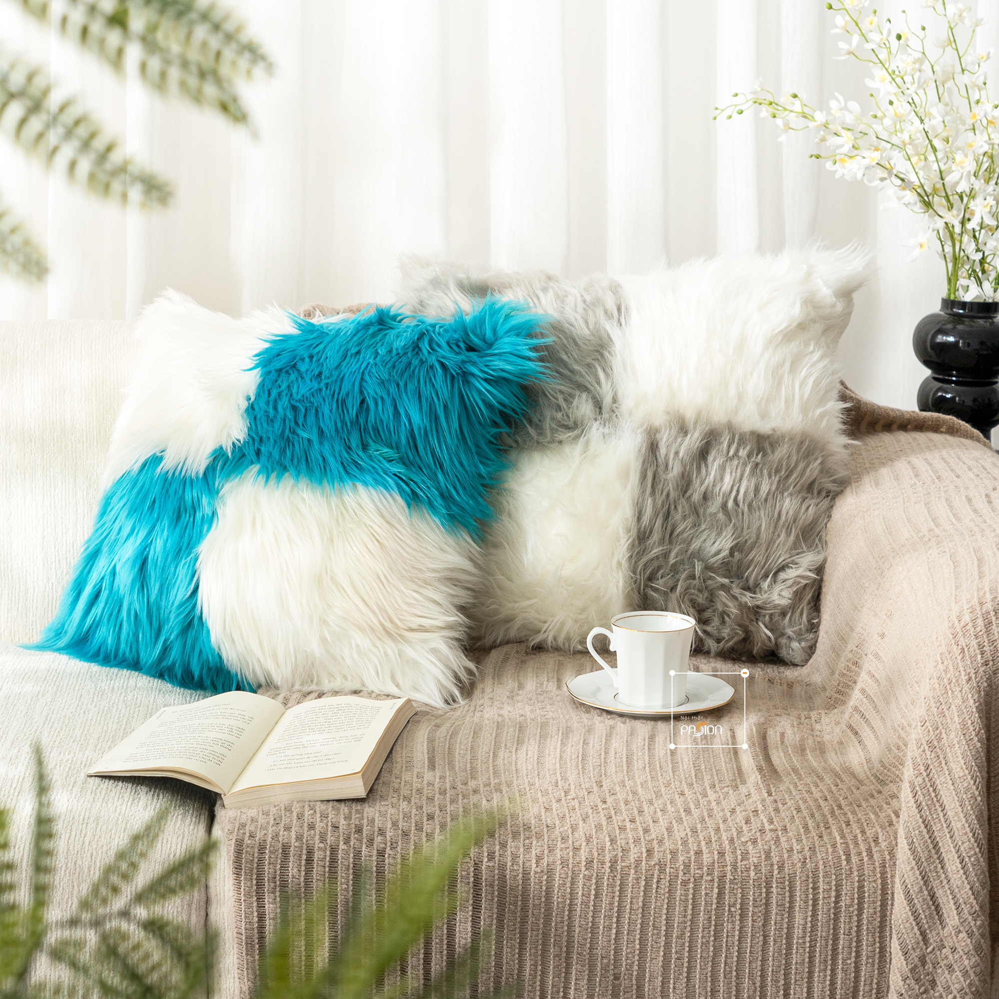 Vỏ Gối Tựa Lưng Lông Mềm Dài Phối Màu Caro KHUYẾN MÃI - ƯU ĐÃI