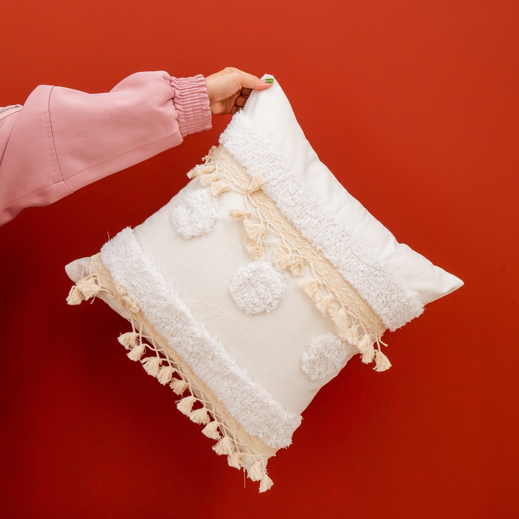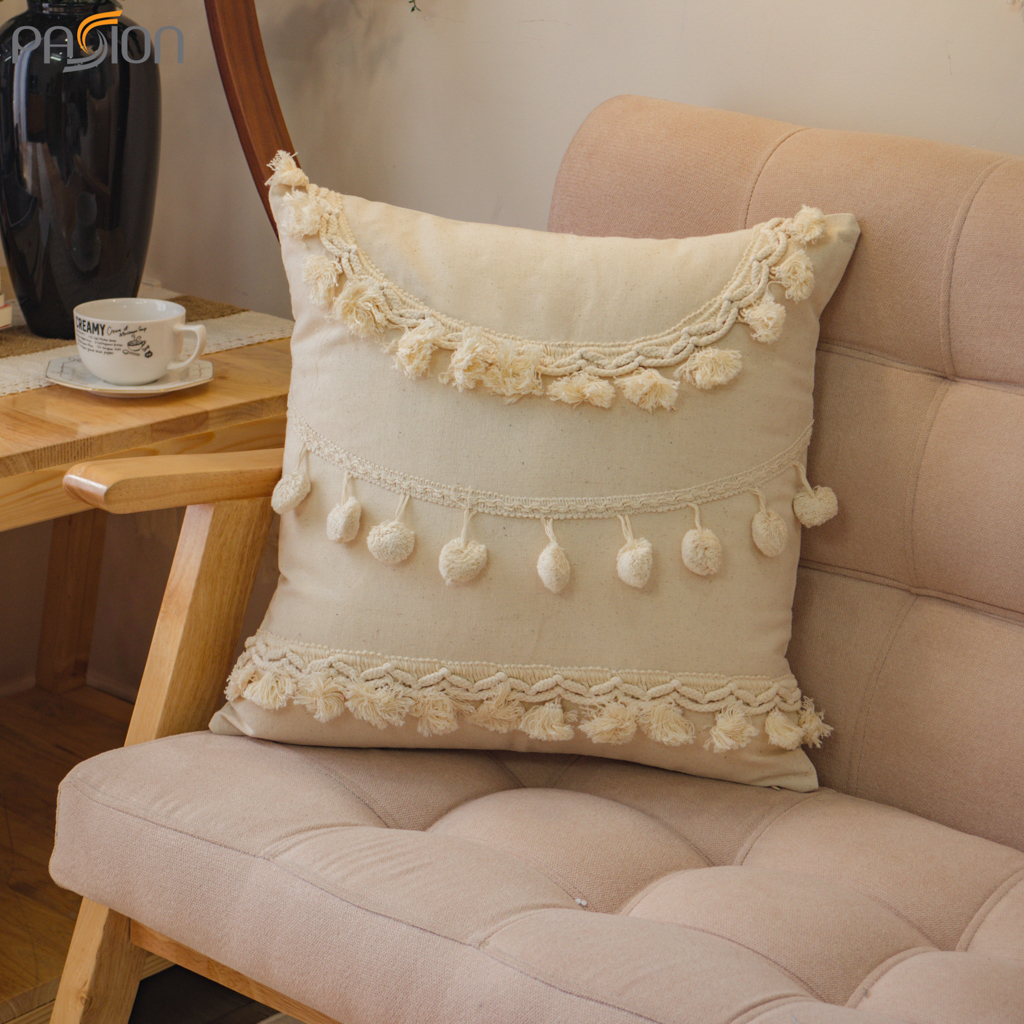 Gối Tựa Lưng Tua Rua Ma Rốc Dệt Tua Rua Bắc Âu KHUYẾN MÃI - ƯU ĐÃI