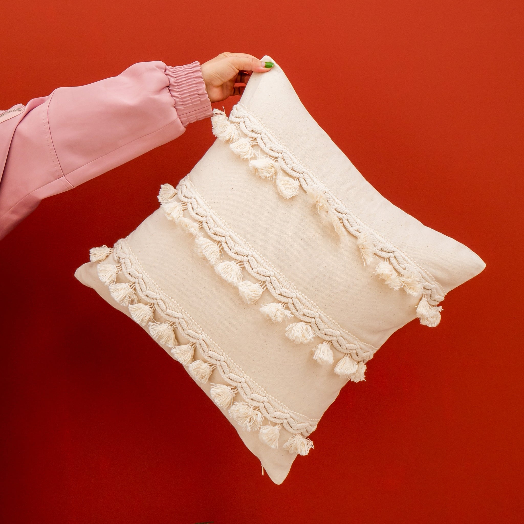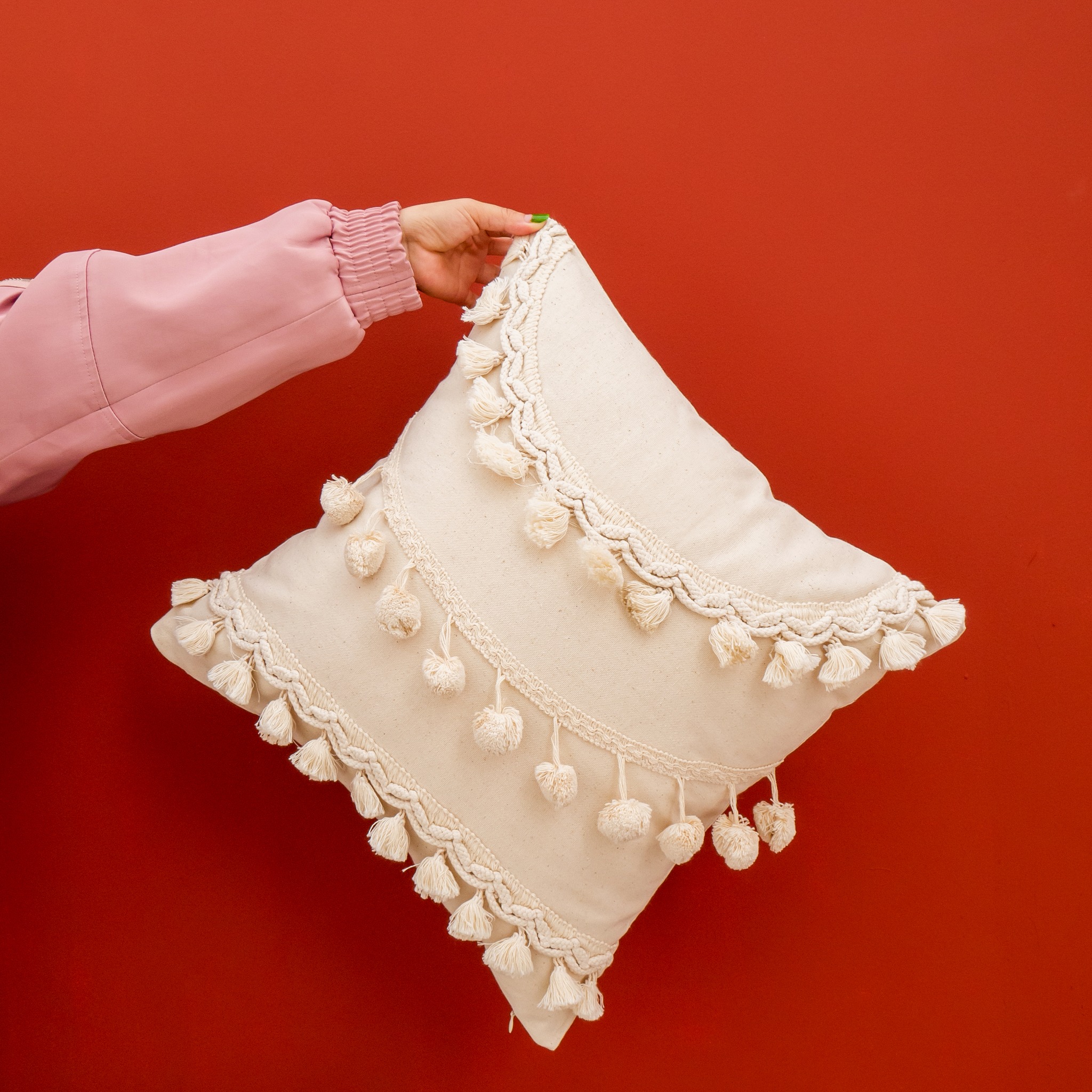 Gối Tựa Lưng Tua Rua Ma Rốc Dệt Tua Rua Bắc Âu