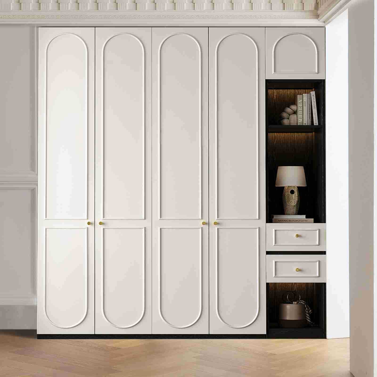 Hệ tủ được phân chia module theo thiết kế linh hoạt, đáp ứng nhiều nhu cầu sử dụng: từ ngăn treo áo dài, ngăn gấp quần áo, đến hộc kéo tiện lợi cho phụ kiện và đồ cá nhân. Giải pháp lưu trữ khoa học này giúp bạn sắp xếp mọi thứ gọn gàng, tối ưu diện tích và nâng cao trải nghiệm sống hàng ngày.
