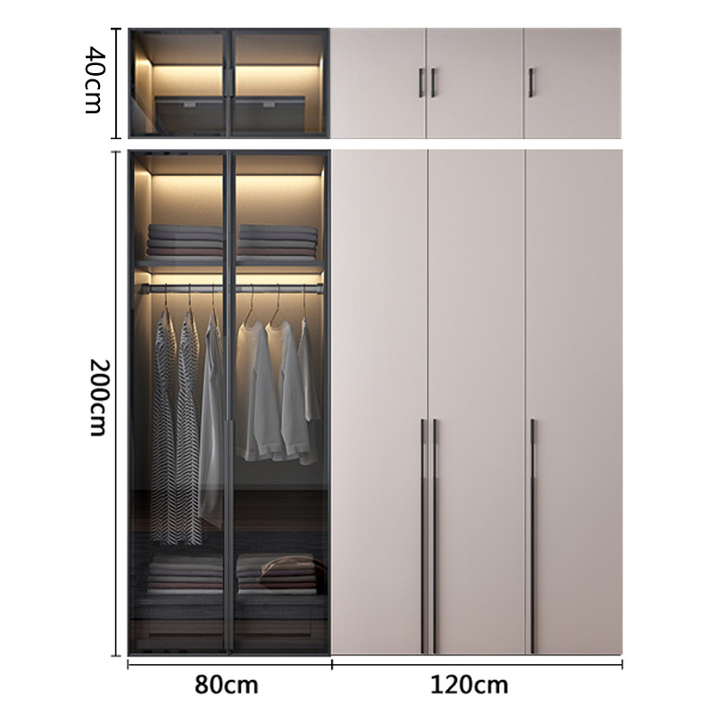 Không chỉ là nơi lưu trữ quần áo, hệ tủ quần áo cao trần hiện đại 240x200cm phối kính cường lực còn là điểm nhấn sang trọng, nâng tầm không gian sống. Với thiết kế cao trần, từng chi tiết được tính toán tỉ mỉ nhằm mang lại sự tiện nghi, tối ưu diện tích và khẳng định phong cách sống hiện đại.