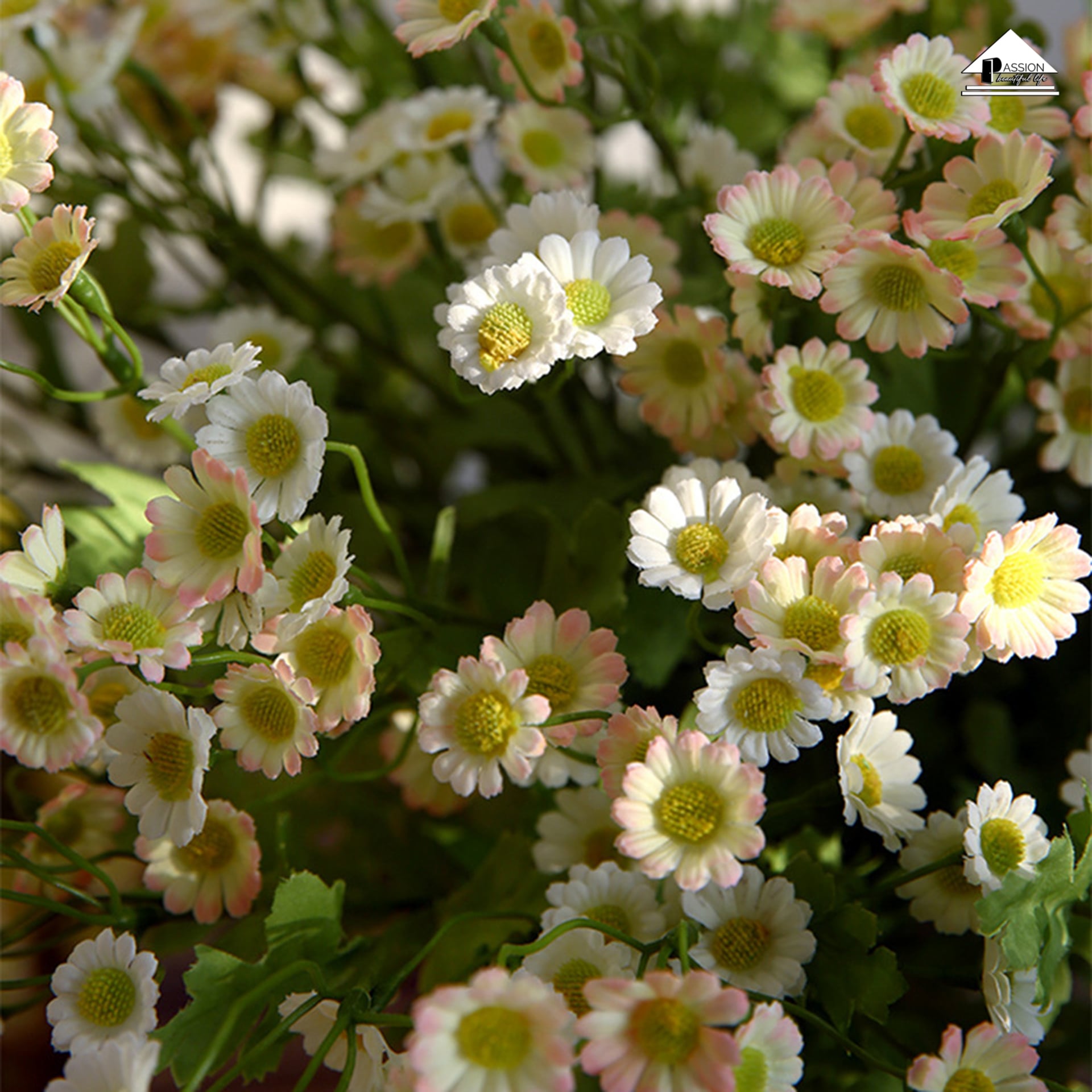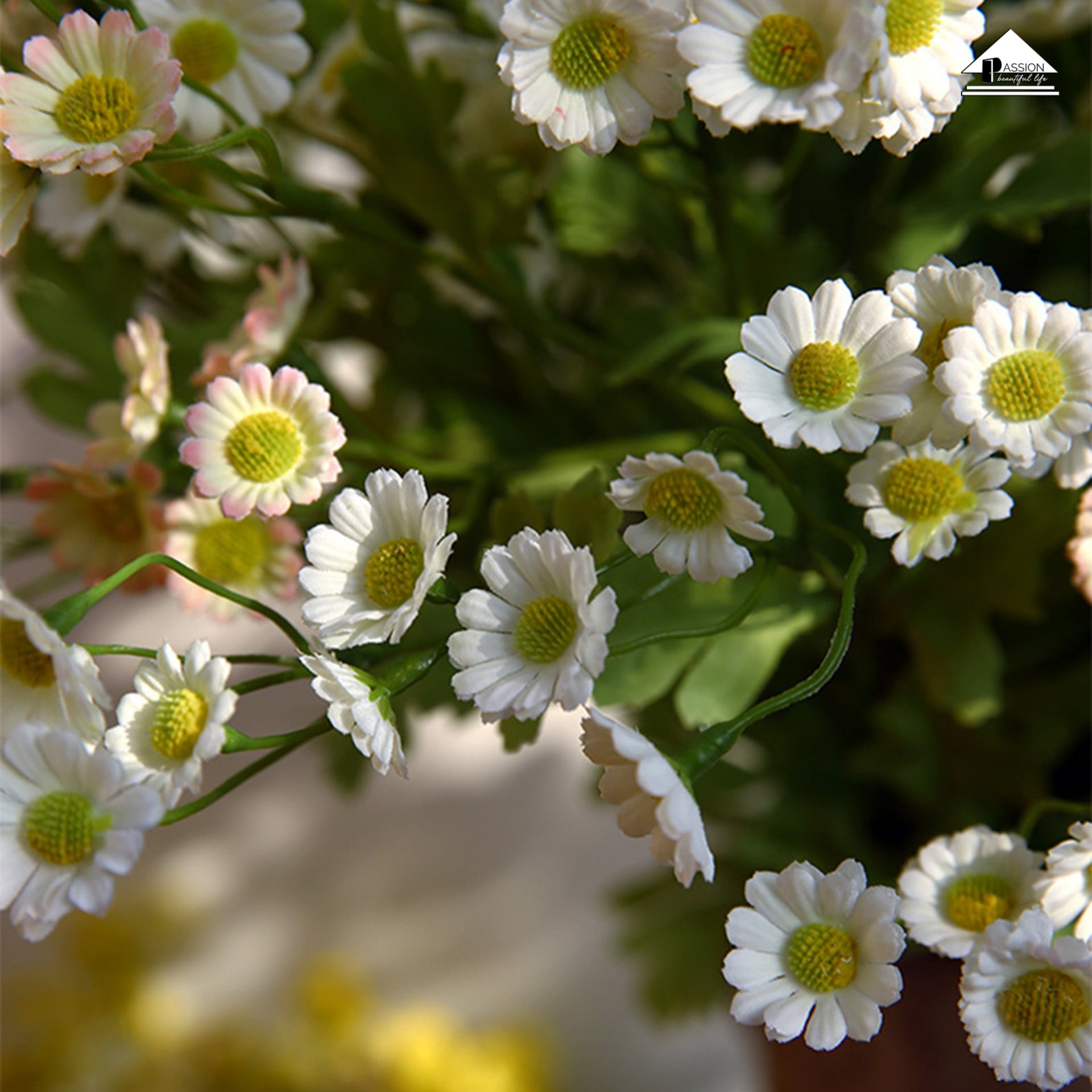 Hoa giả nhà Passion được thiết kế rất tinh tế, tự nhiên giúp cho không gian hòa vào thiên nhiên. Không gian nơi bạn trang trí bằng Hoa Cúc Bi Nhỏ sẽ thêm phần nổi bật, thu hút được mọi ánh nhìn.