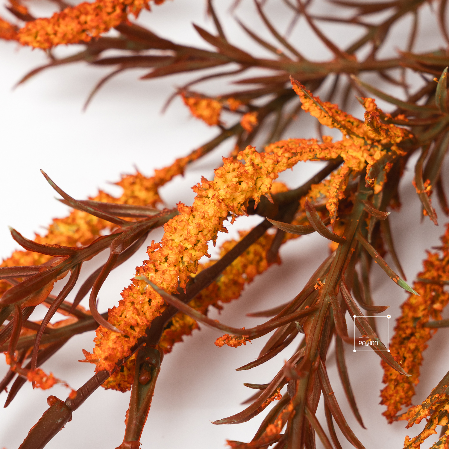 Cành hoa Setaria mang đến một không gian trang trí gần gũi và thư giãn nhờ vào màu sắc tươi sáng và thiết kế tựa như hoa thật. Hoa Setaria (hay còn gọi là cỏ nhung) thường được biết đến với vẻ đẹp thanh thoát, nhẹ nhàng, và có thể dễ dàng kết hợp với nhiều phong cách trang trí khác nhau. Màu đỏ cam, kết hợp với những sắc vàng nhạt, mang lại cảm giác tươi mới, mát mẻ và thư giãn cho không gian, phù hợp để tạo điểm nhấn trong phòng khách, bàn làm việc hay các khu vực công cộng như quán cà phê, nhà hàng.