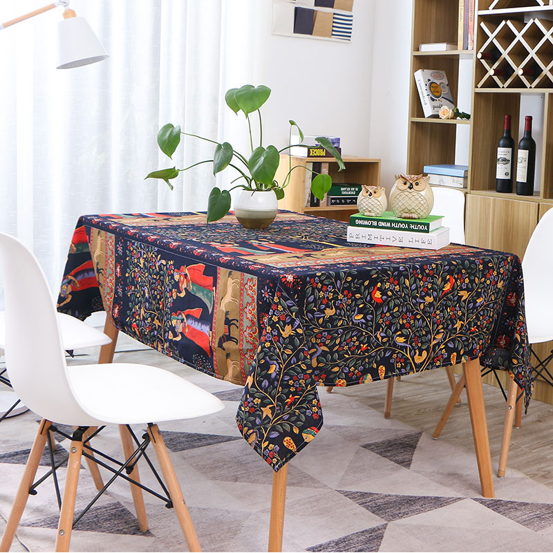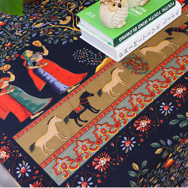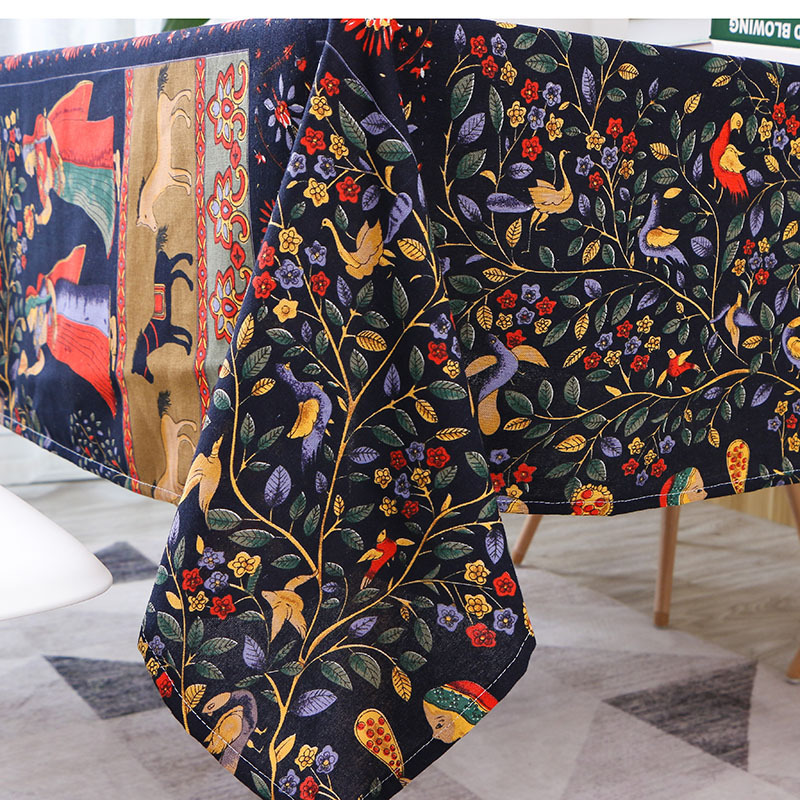 Khăn Trải Bàn Bố Gai Phong Cách Cổ Điển Tranh Ai Cập