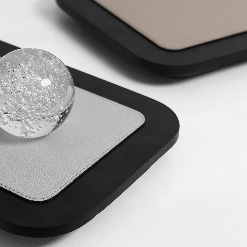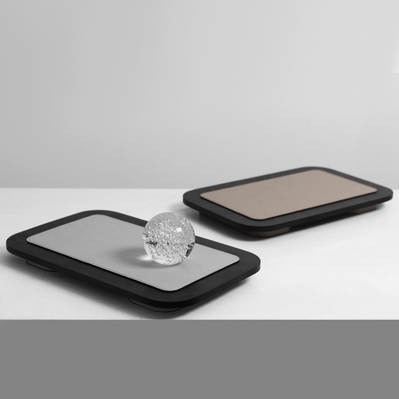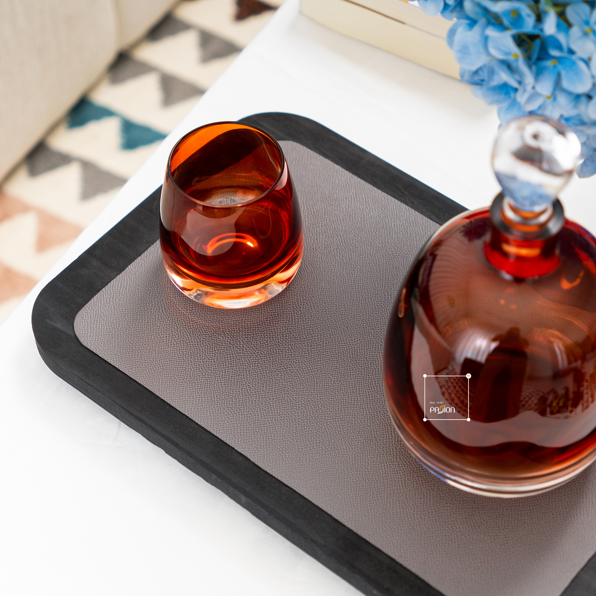 - Da: Da lót trên khay mang đến cảm giác mềm mại và sang trọng. Da còn giúp bảo vệ bề mặt gỗ, làm tăng tuổi thọ của sản phẩm và dễ dàng vệ sinh.