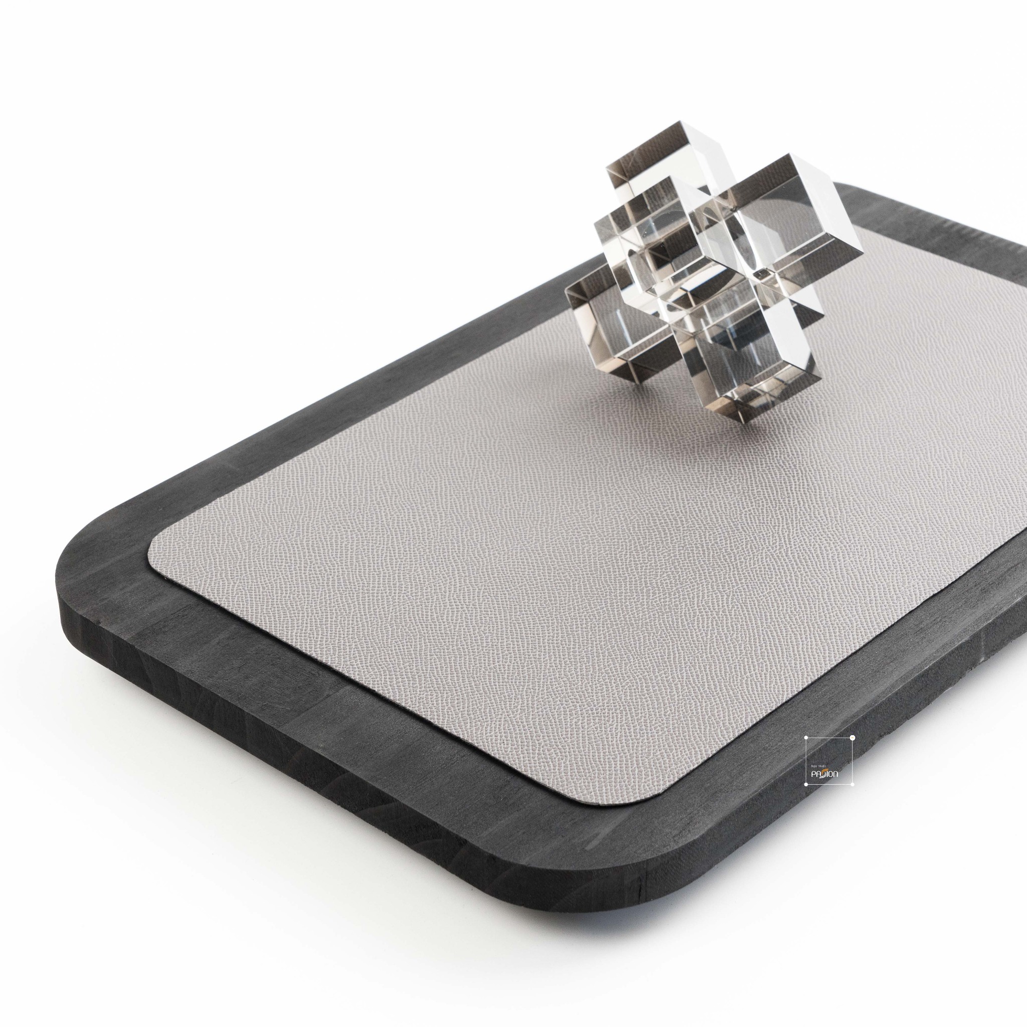 Khay decor này không chỉ có thiết kế hiện đại mà còn mang lại vẻ đẹp sang trọng và tinh tế. Sự kết hợp giữa gỗ tự nhiên và da cao cấp tạo ra một sản phẩm nổi bật và phù hợp với nhiều phong cách nội thất khác nhau.