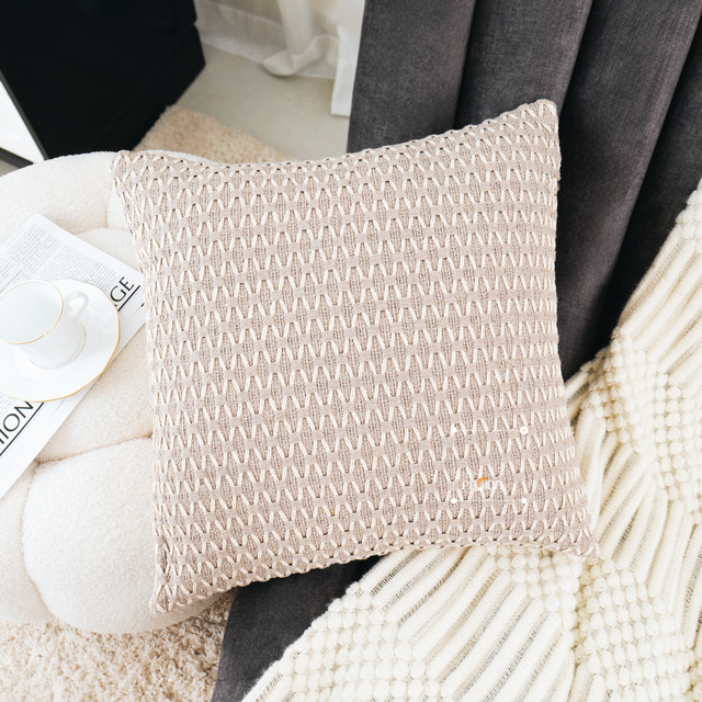 Set Vỏ Gối Tựa Lưng Sofa Bohemian Tua Rua Đan Len Phối Màu Wabi Sabi